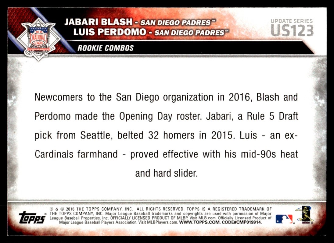 | 2016 Topps Update Jabari Blash/Luis Perdomo RC San Diego Padres #US123 Dual |