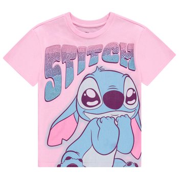 - Delightful Disney Lilo and Stitch Short Sleeve T-Shirt for girls. Colorful Large Print with Character Names in Rhinestones.