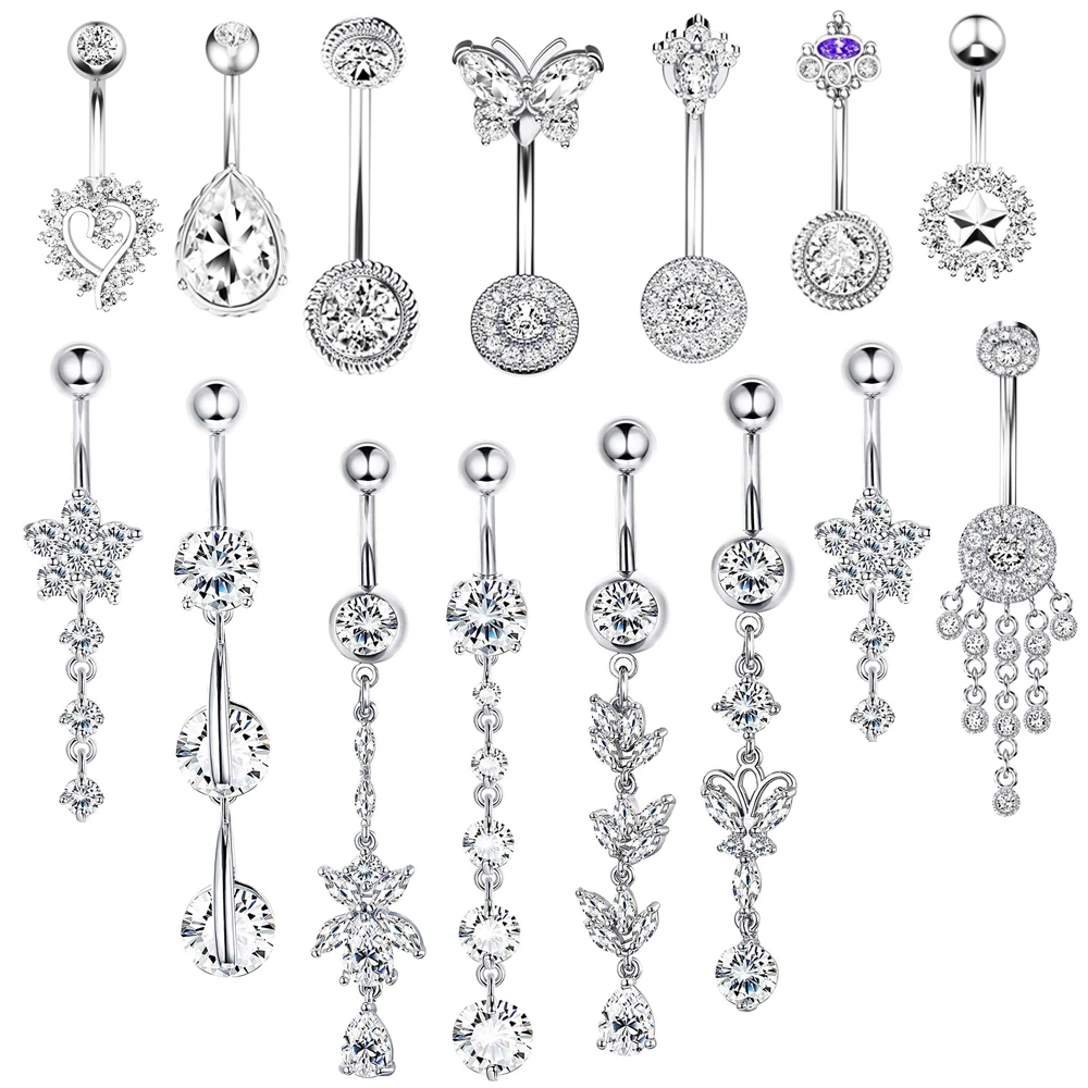 Crystal Belly Button Ring 14G Butterfly Belly Piercing Long Dangle Navel Ring
