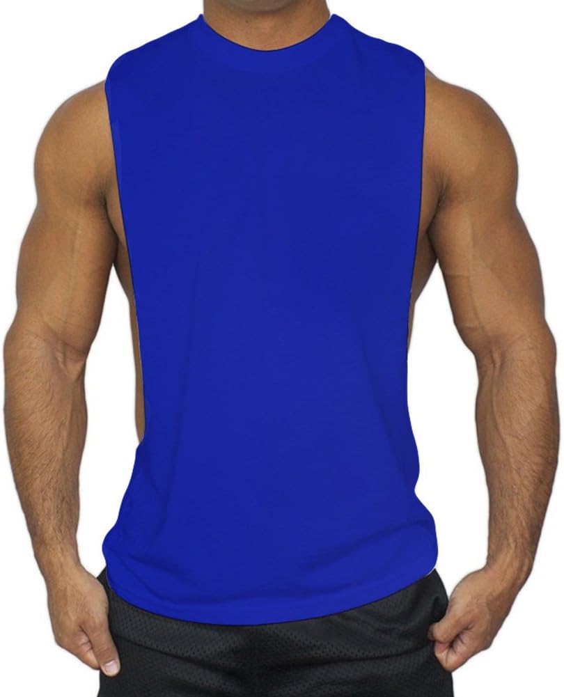Men's Muscle Cut Off Tank Tops Bodybuilding Fitness Sleeveless XX-Large, Blue