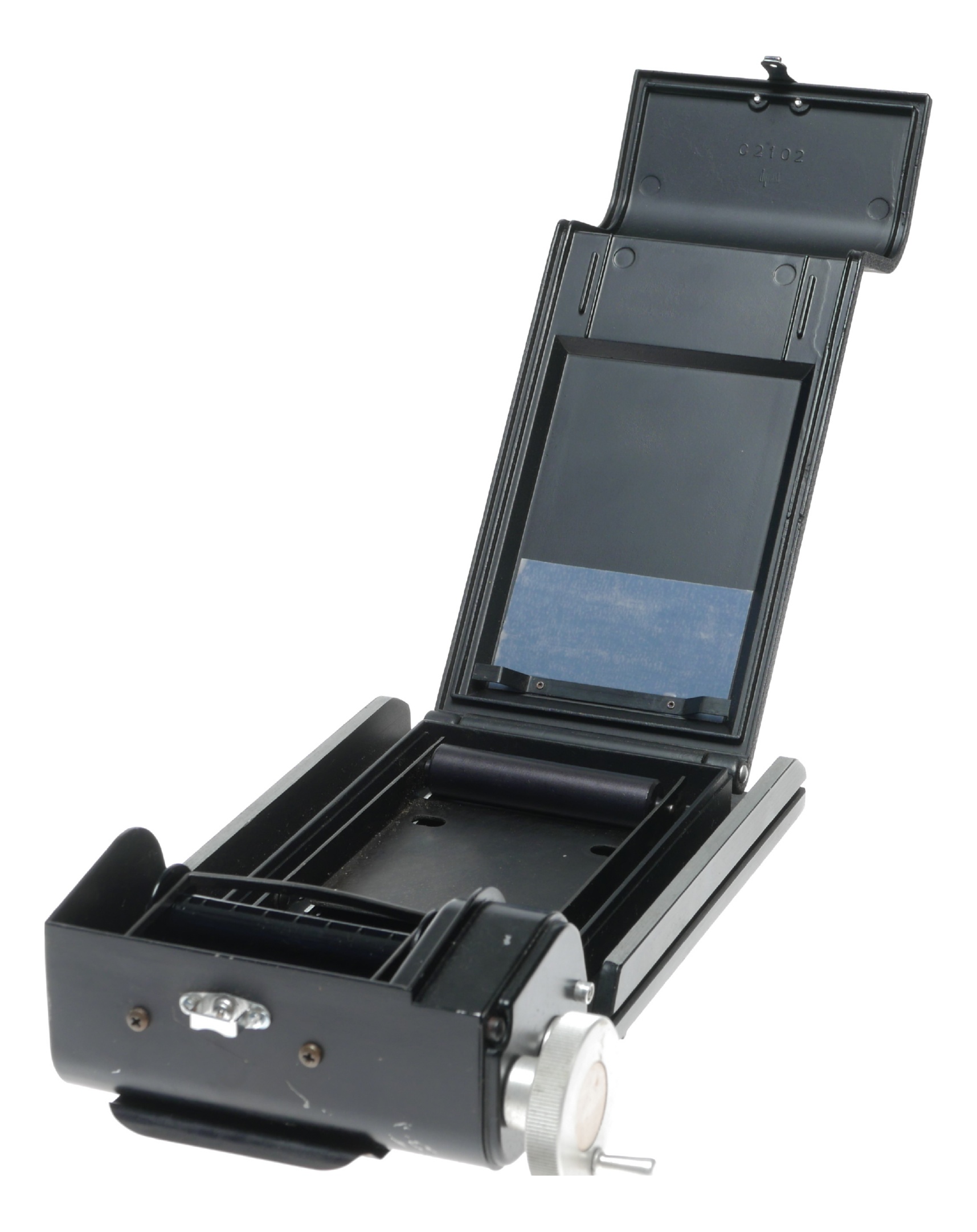 Vintage 6�7 Roll Film Holder, enabling to shoot 120 medium format roll film with a large format camera, eg. monorail or field camera, designed to use 4�5 sheet film. In good used condition.