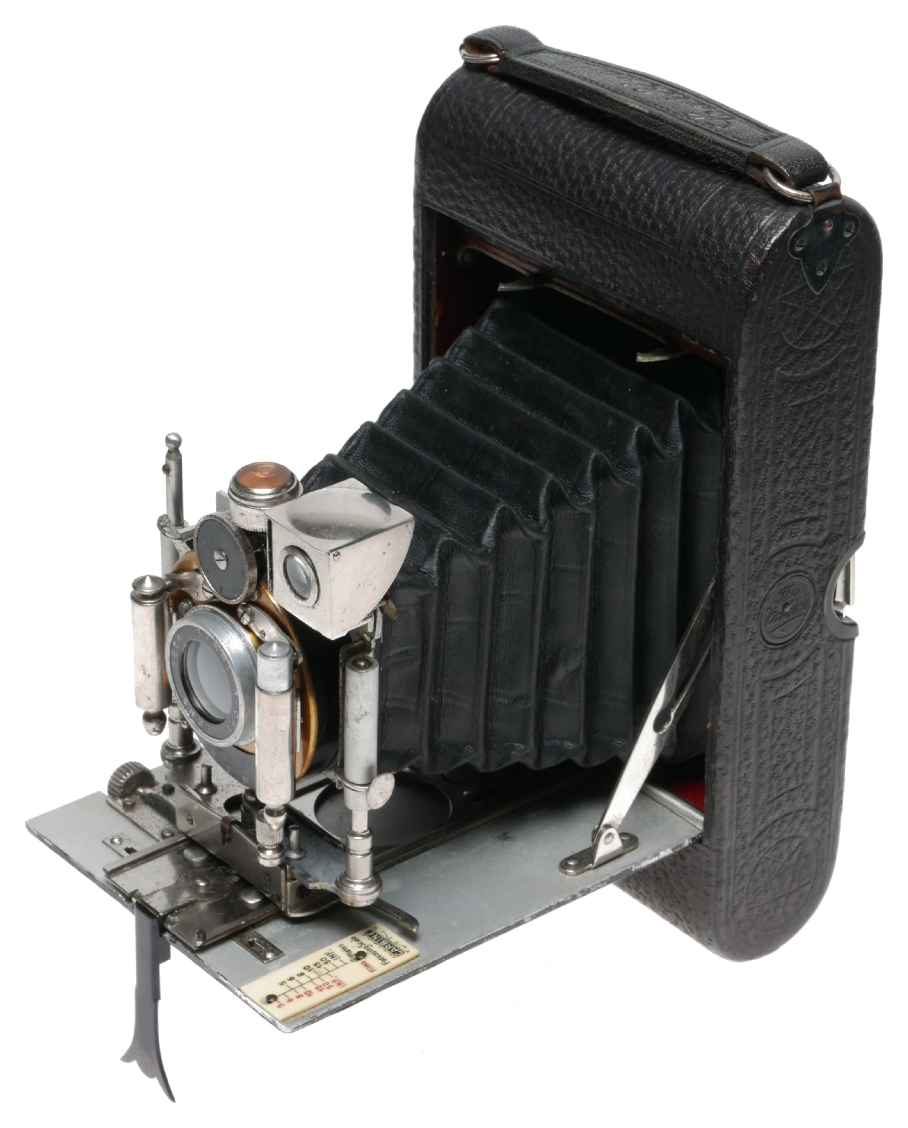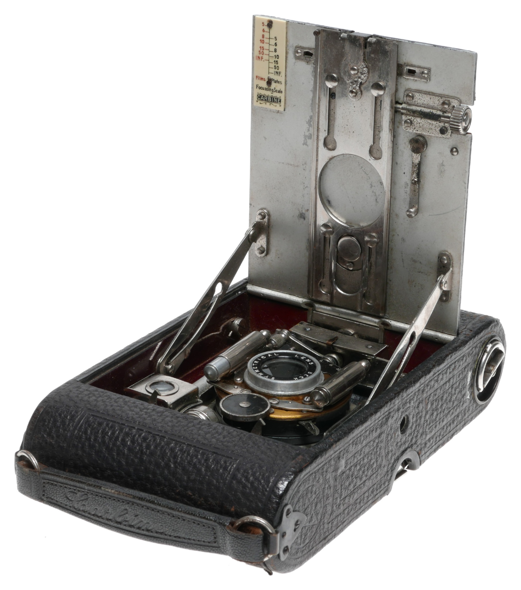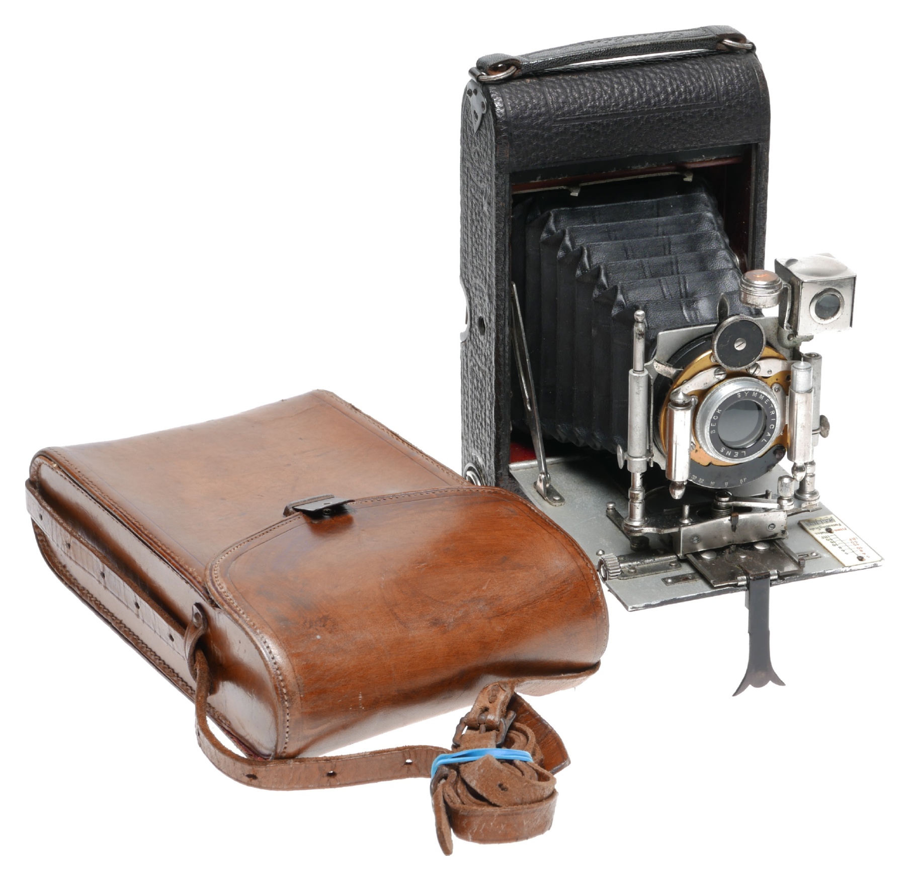 Ca.1920-1930, this film and plate folding camera is in very good vintage condition and supplied with leather pouch.