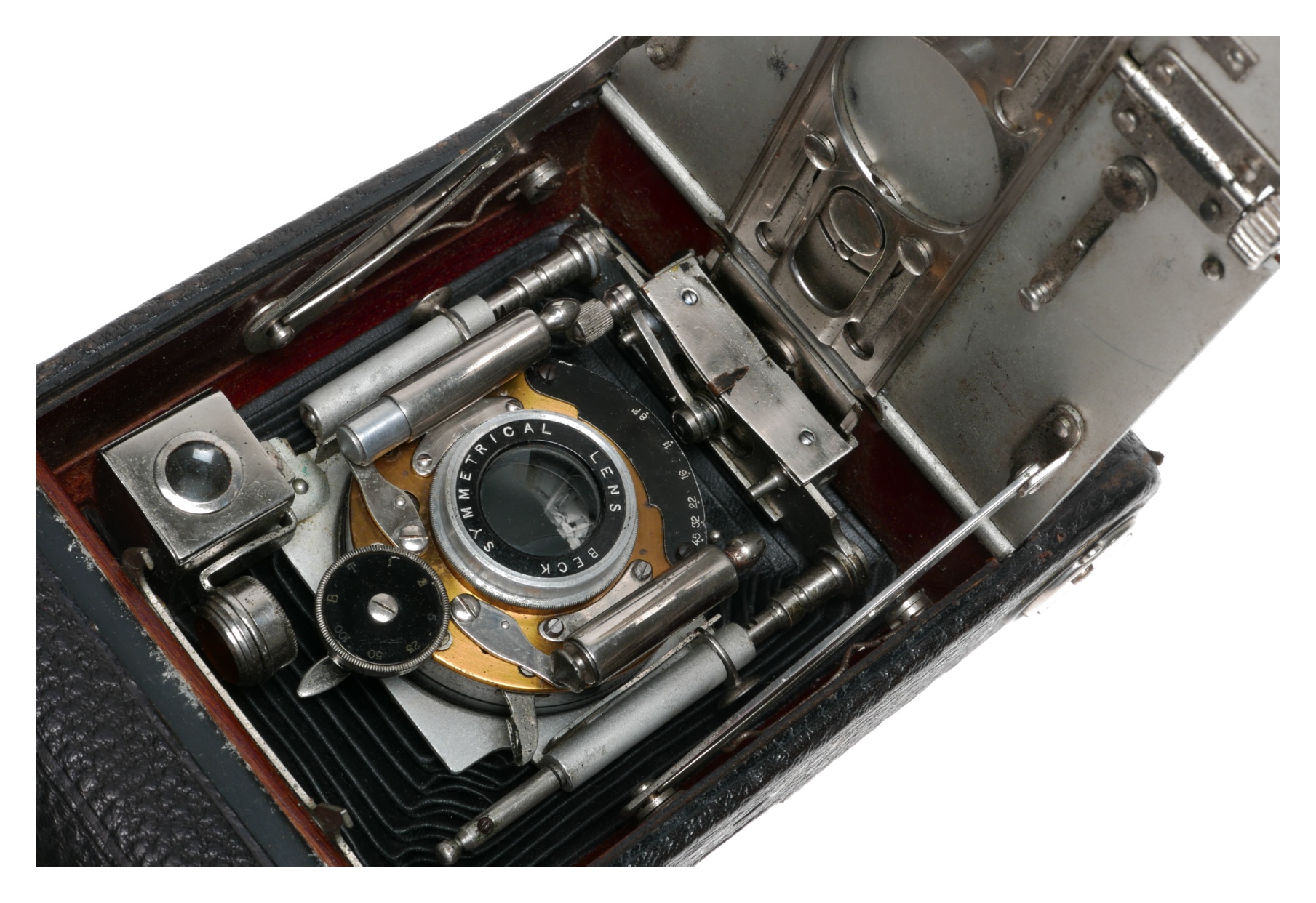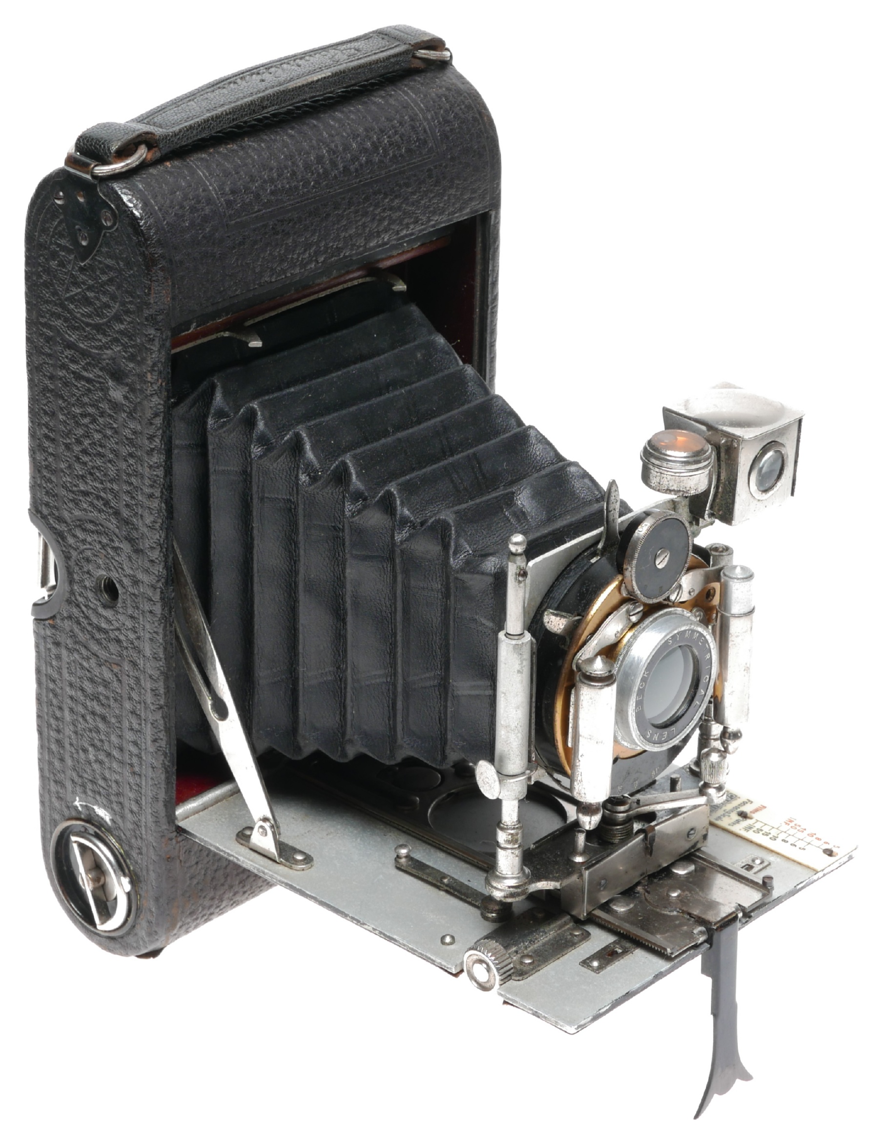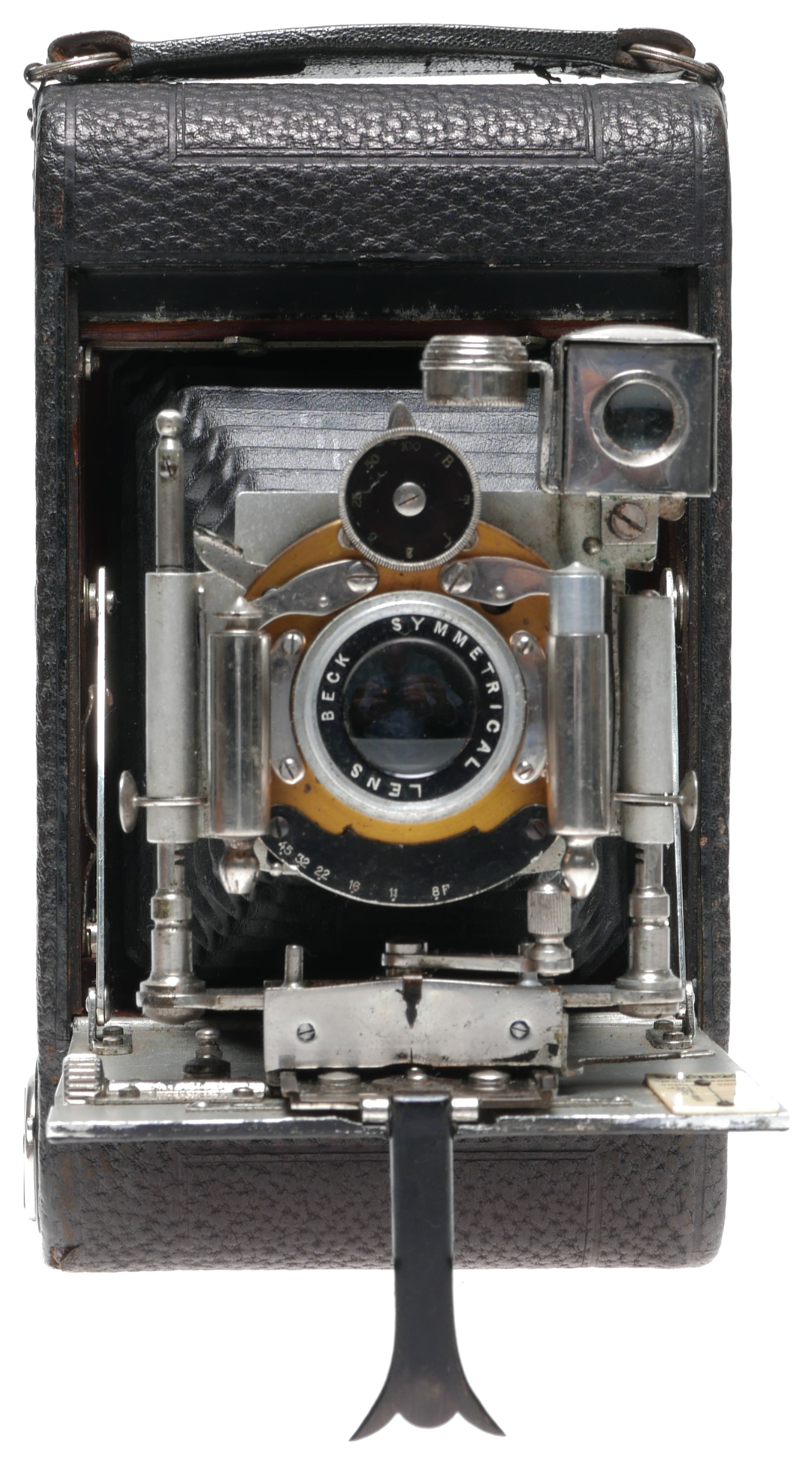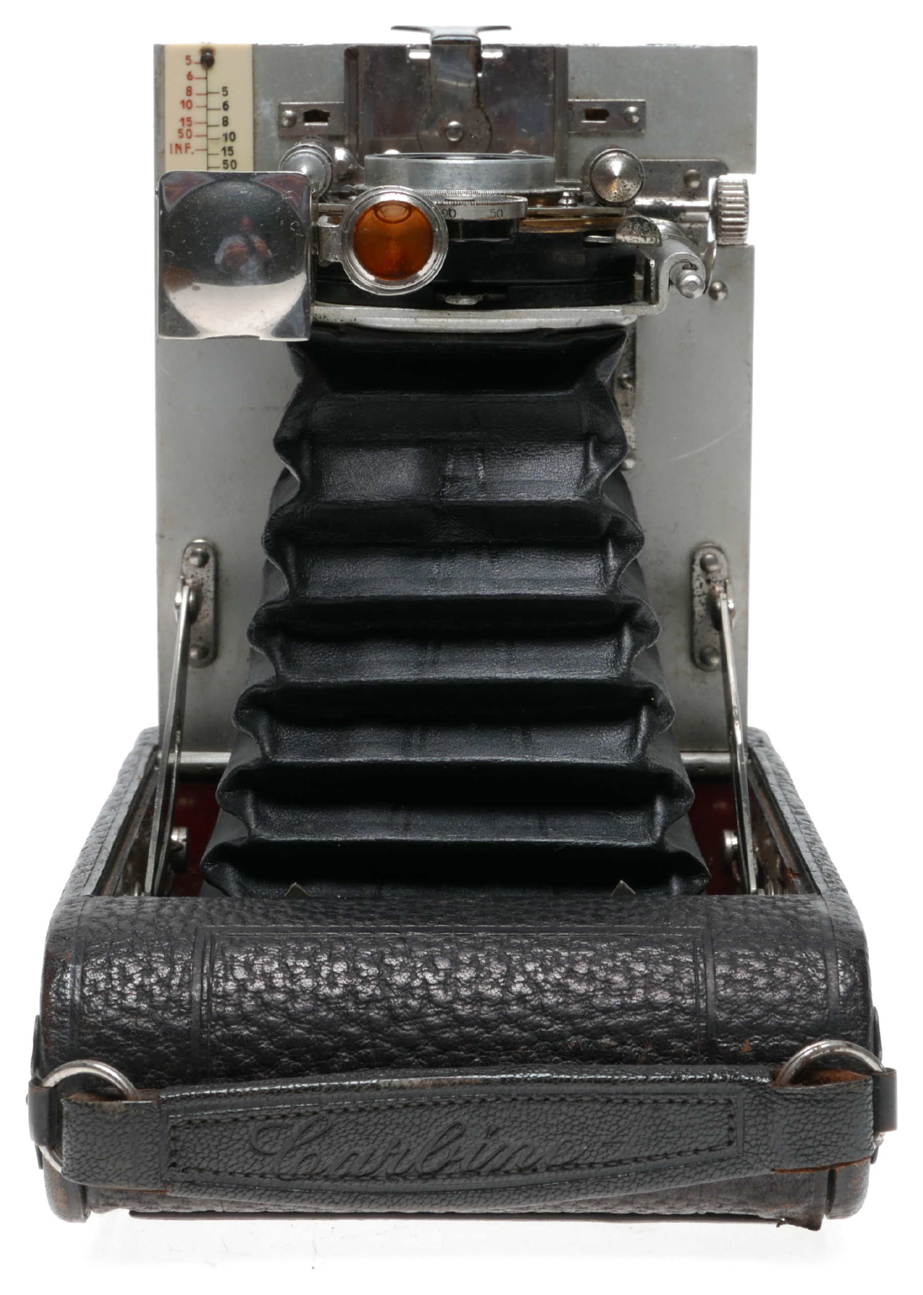 Ca.1920-1930, this film and plate folding camera is in very good vintage condition and supplied with leather pouch.