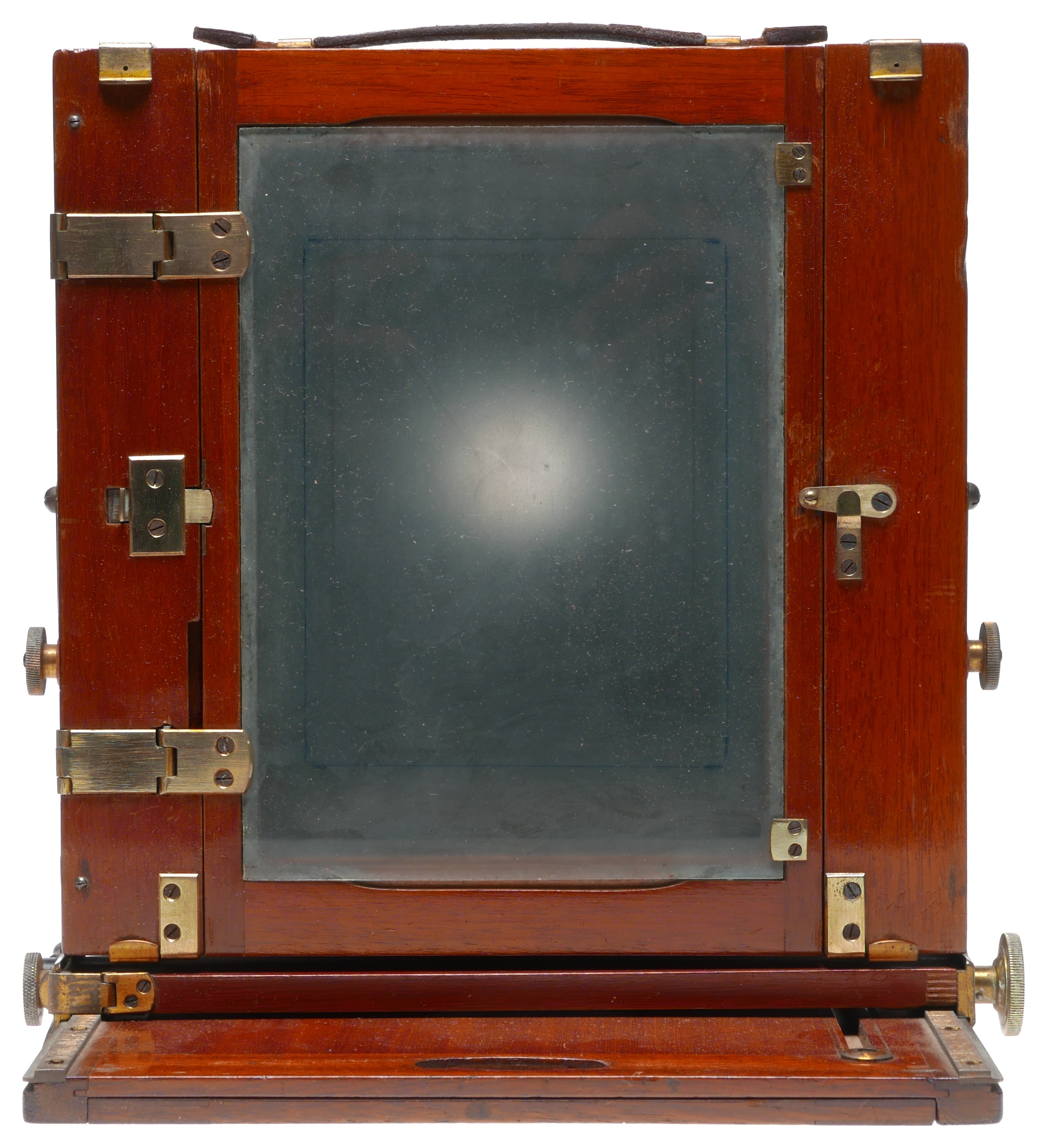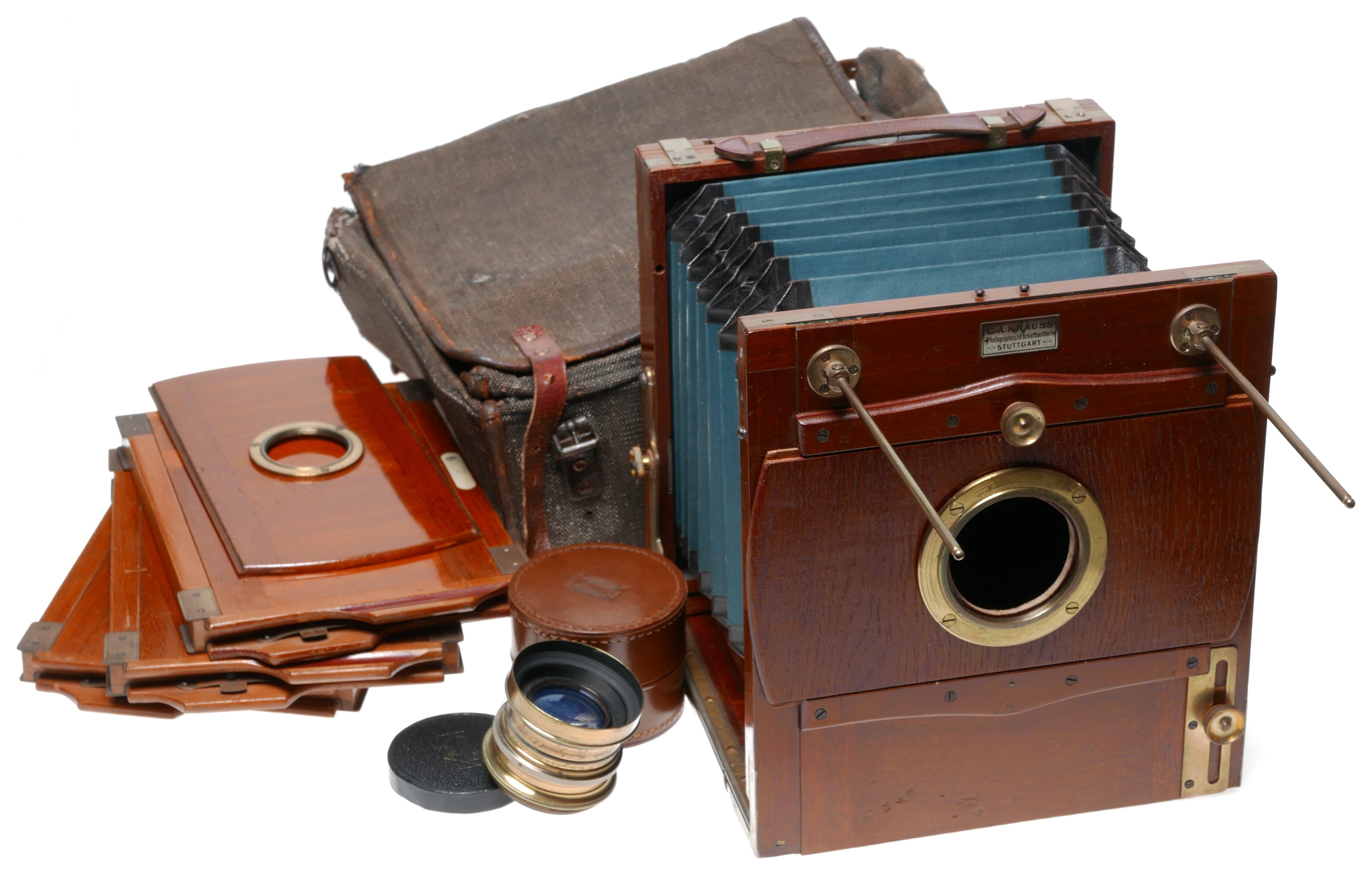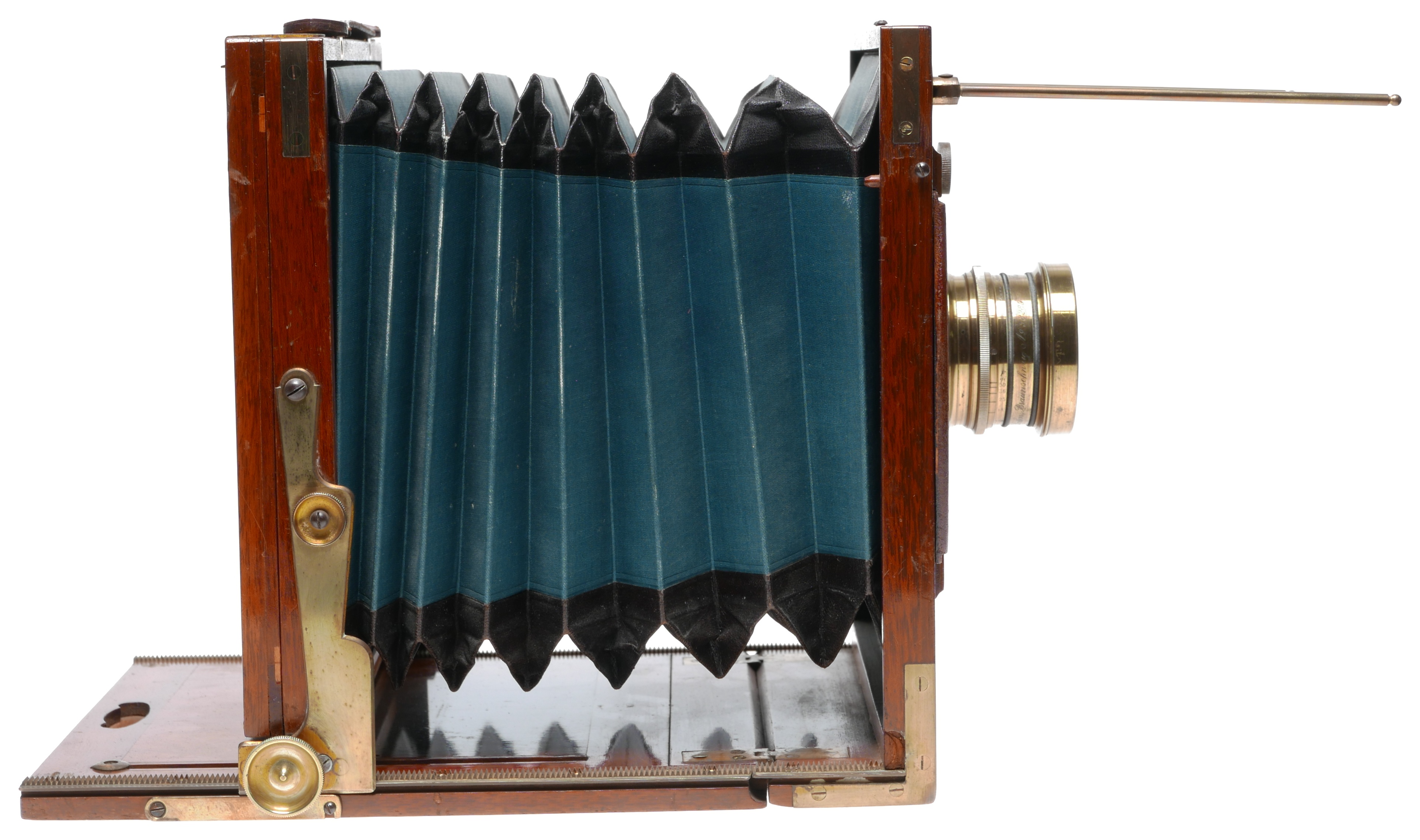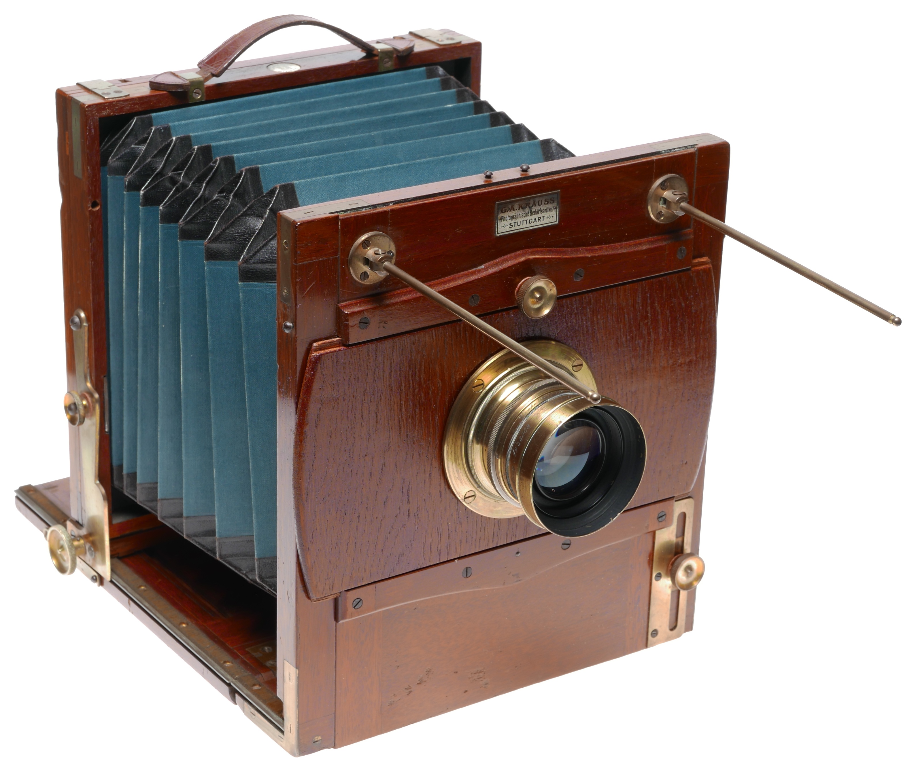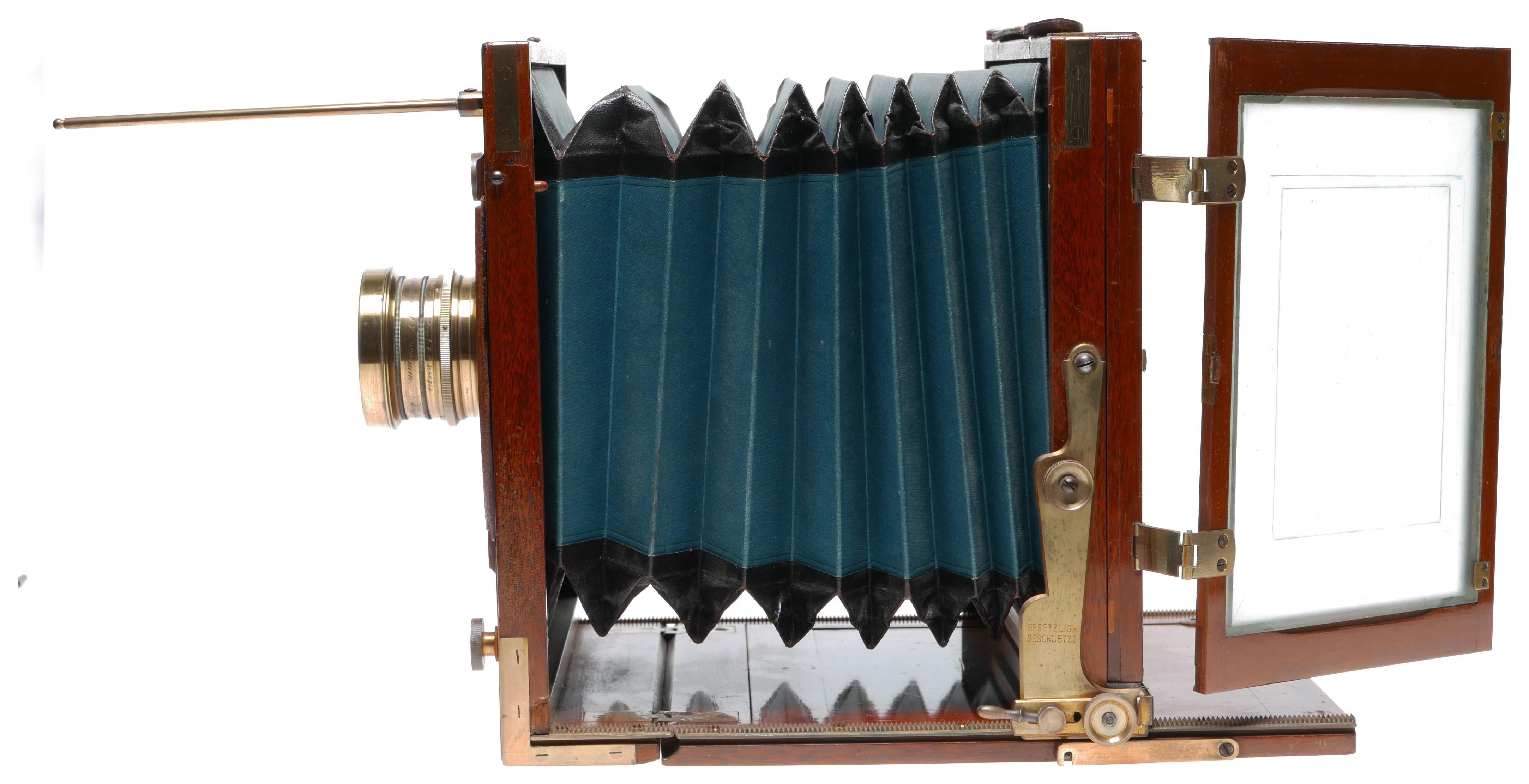 GLOBUS K-Series II FIELD CAMERA Blue bellows Ca. 1900-1920 PLATE SIZE : 5X7 (130x180) MANUFACTURE :A.G ERNEMANN U.E. HERBST & FIRL GORLITZ G�RLITZ - GERMANY LENS CHARACTERISTIC VOIGTLANIYS & J. BRAUNSCHWEIG SERIAL NO : 209, BRASS BODY TRIPLE ANASTIGMAT 7.7 / 280 60 mm diam. SHUTTER No:86757 BY COOKE LINSE H.D. TAYLOR'S.