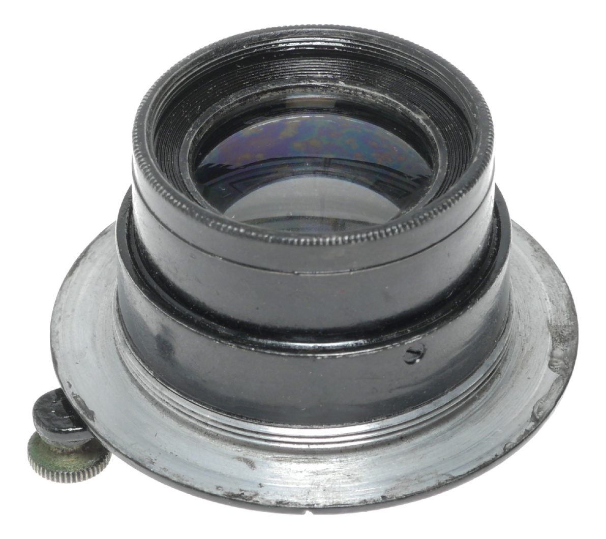 Vintage Dagor type lens, in much-aged condition and sold as is. The glass shows signs of ageing and wear, also a fair amount of rainbow effect and the body has been touched up.