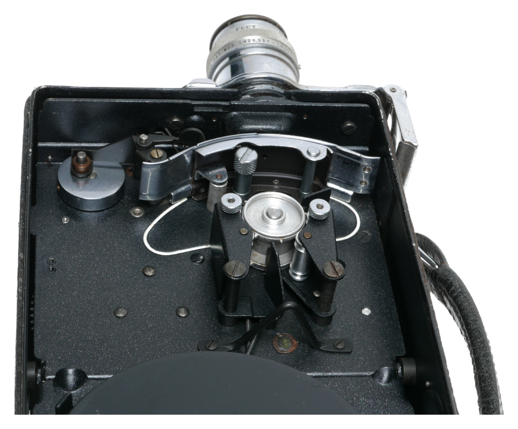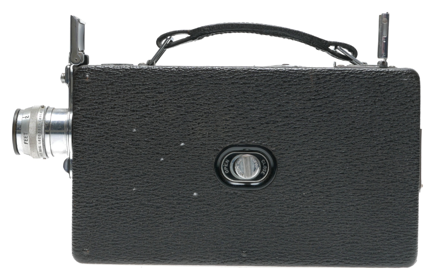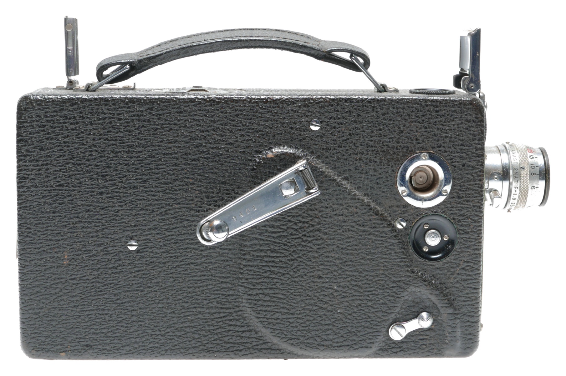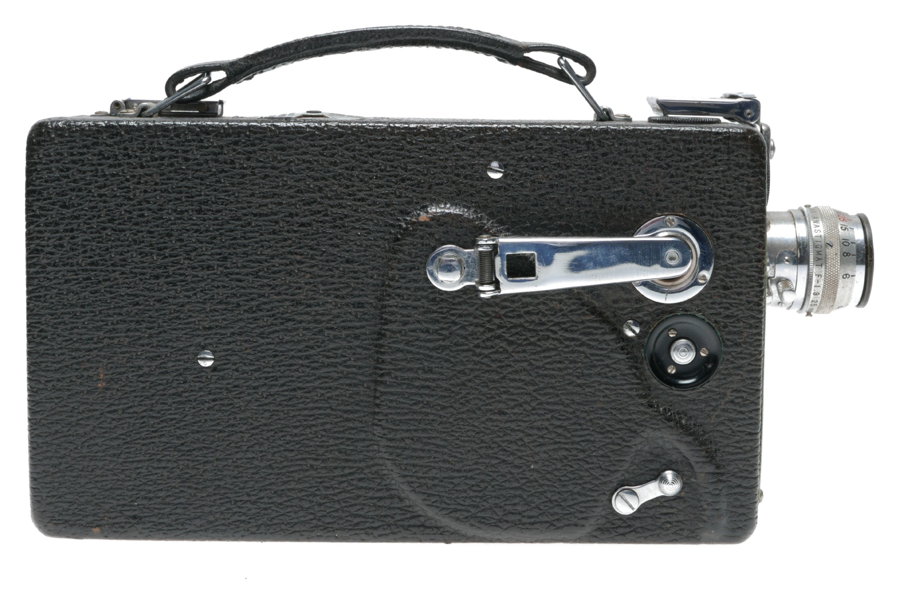 This spring motor-driven 16mm cine camera is in beautiful vintage condition, considering its age, ca.1930. This model was popular as it took 100ft film reels. Supplied in its original hard case.