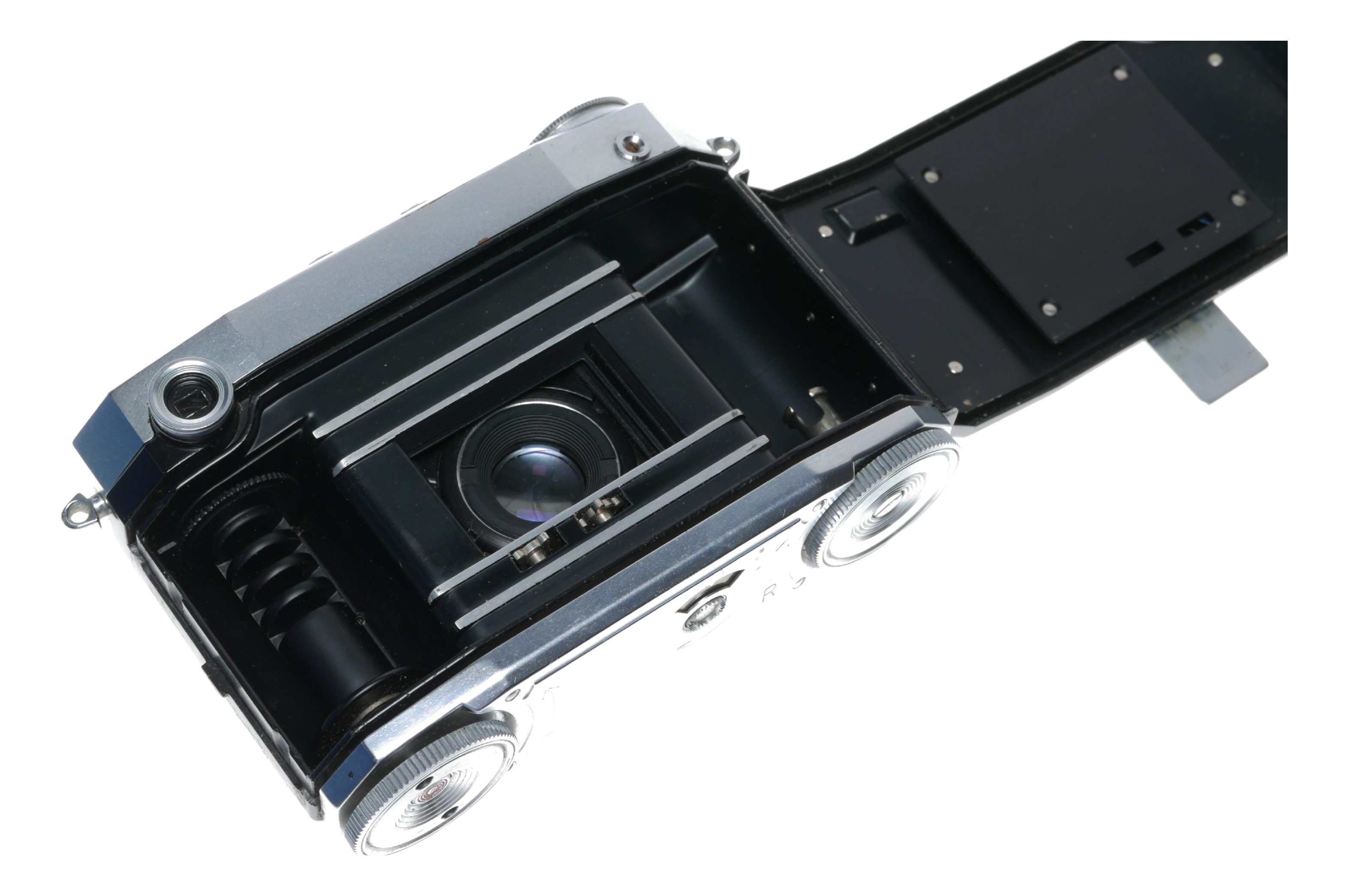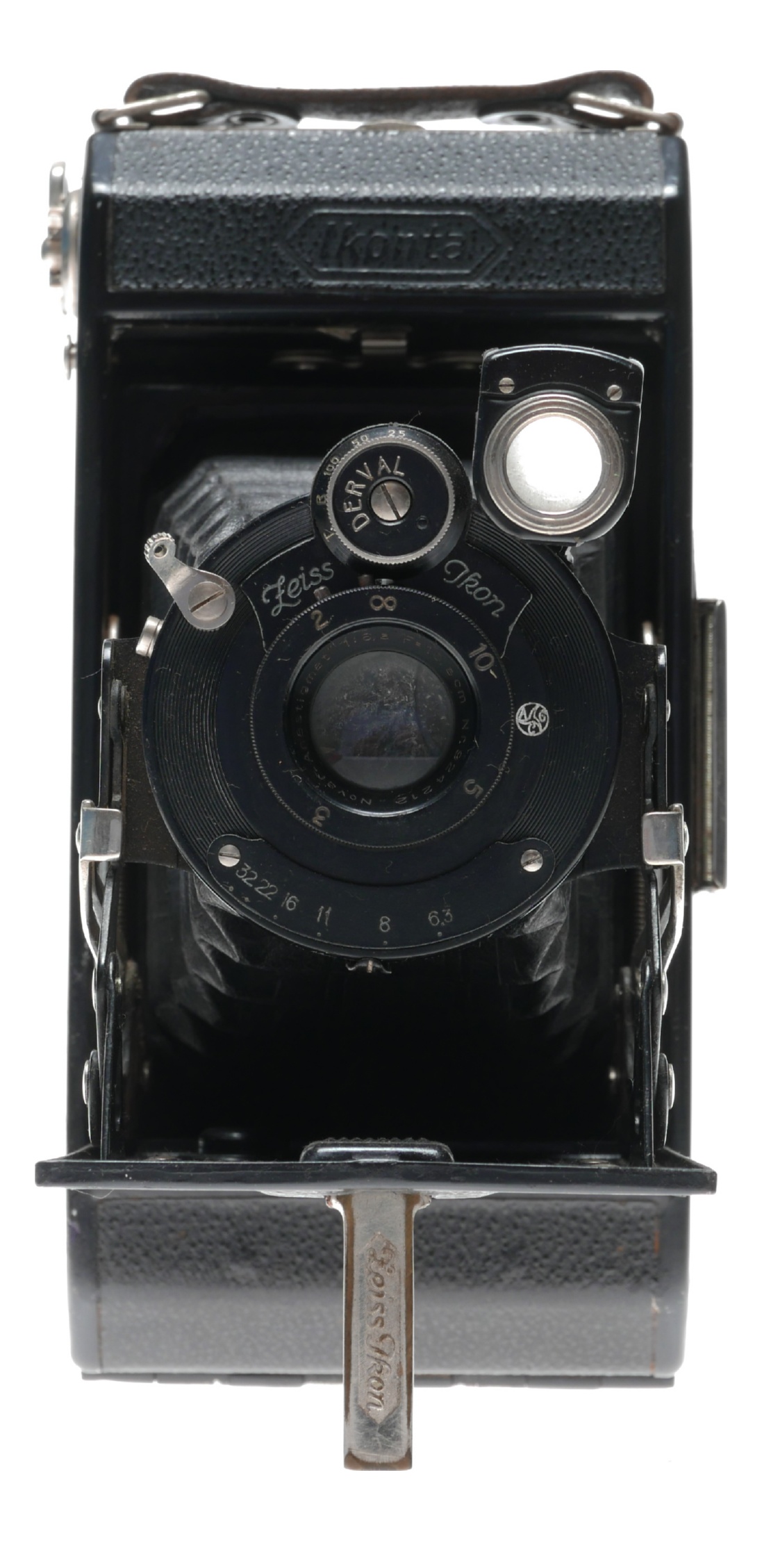 Ca.1929-1937, the first in the long Ikonta line of a folding cameras, also known as the "Ikomat". It takes 6x9cm images on 120 type rollfilm. The lens has plenty fungus (its almost pretty !), otherwise in good almost antique condition.