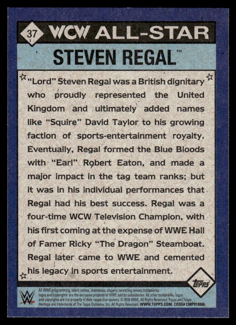 | 2016 Topps WWE Heritage WCW/nWo All-Stars Steven Regal #37 |