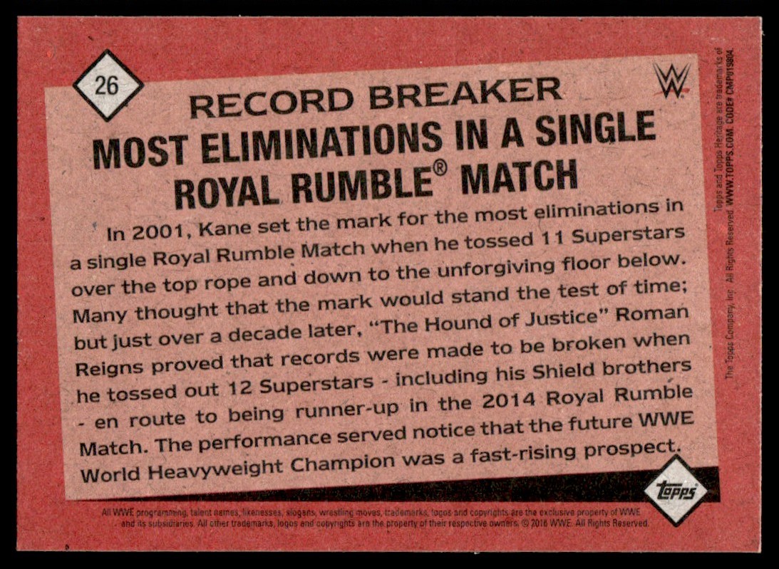 | 2016 Topps WWE Heritage Record Breakers Roman Reigns #26 Insert |