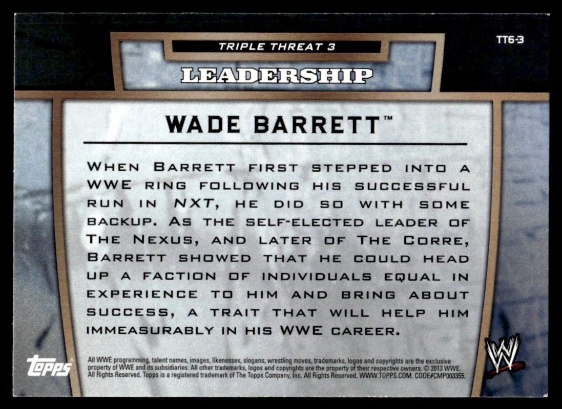 | 2013 Topps WWE Triple Threat Tier 3 Wade Barrett - Leadership #TT6-3 Insert |