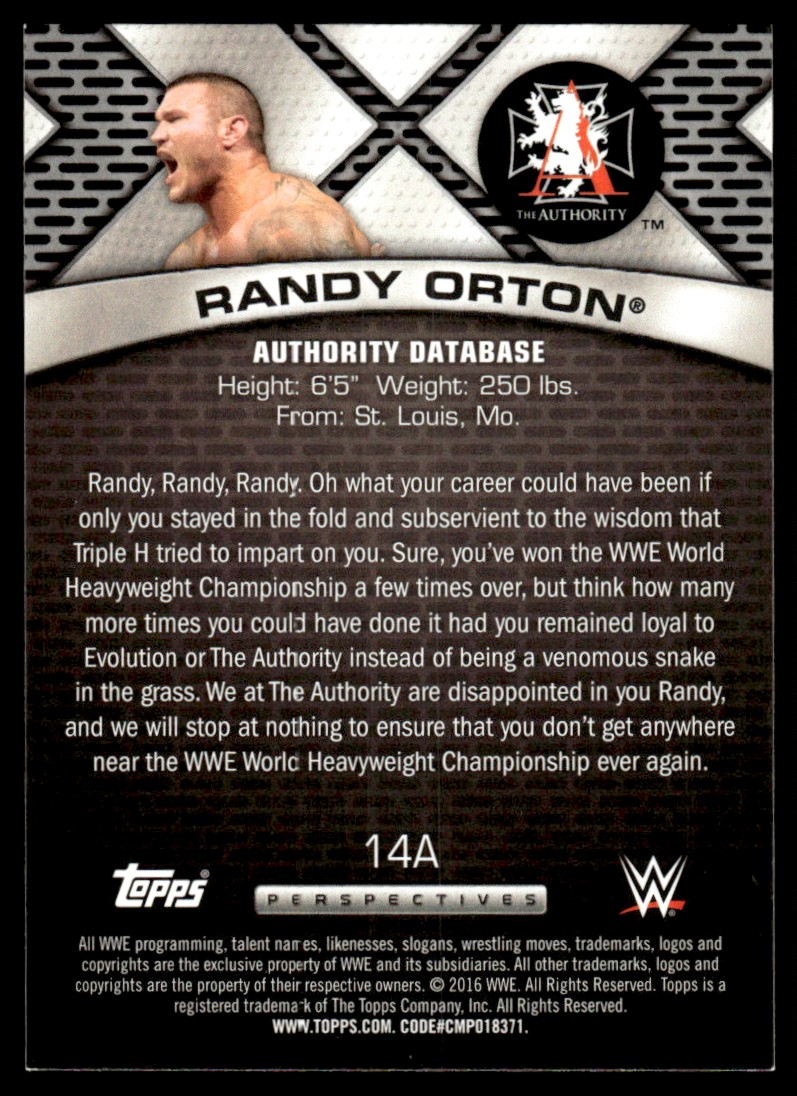 | 2016 Topps WWE Authority Database Perspectives Randy Orton #14A |