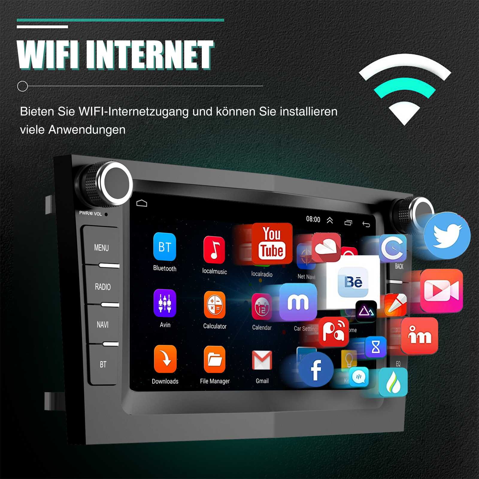 Navigationssystem und WLAN: Unterstützt WiFi-Verbindung. Nachdem Sie das WLAN verbunden haben, können Sie jede APP aus dem App Store herunterladen, z. B. Youtube, Tik Tok, Spotify usw. Autoradio mit GPS, genaue Positionierung, stabiles Signal, Unterstützung bei der Verwendung von Online- oder Offline-Karten, keine Sorge mehr, sich zu verlaufen, wenn Sie unterwegs sind. Unabhängige Antenne sorgt für starken WLAN-Empfang.