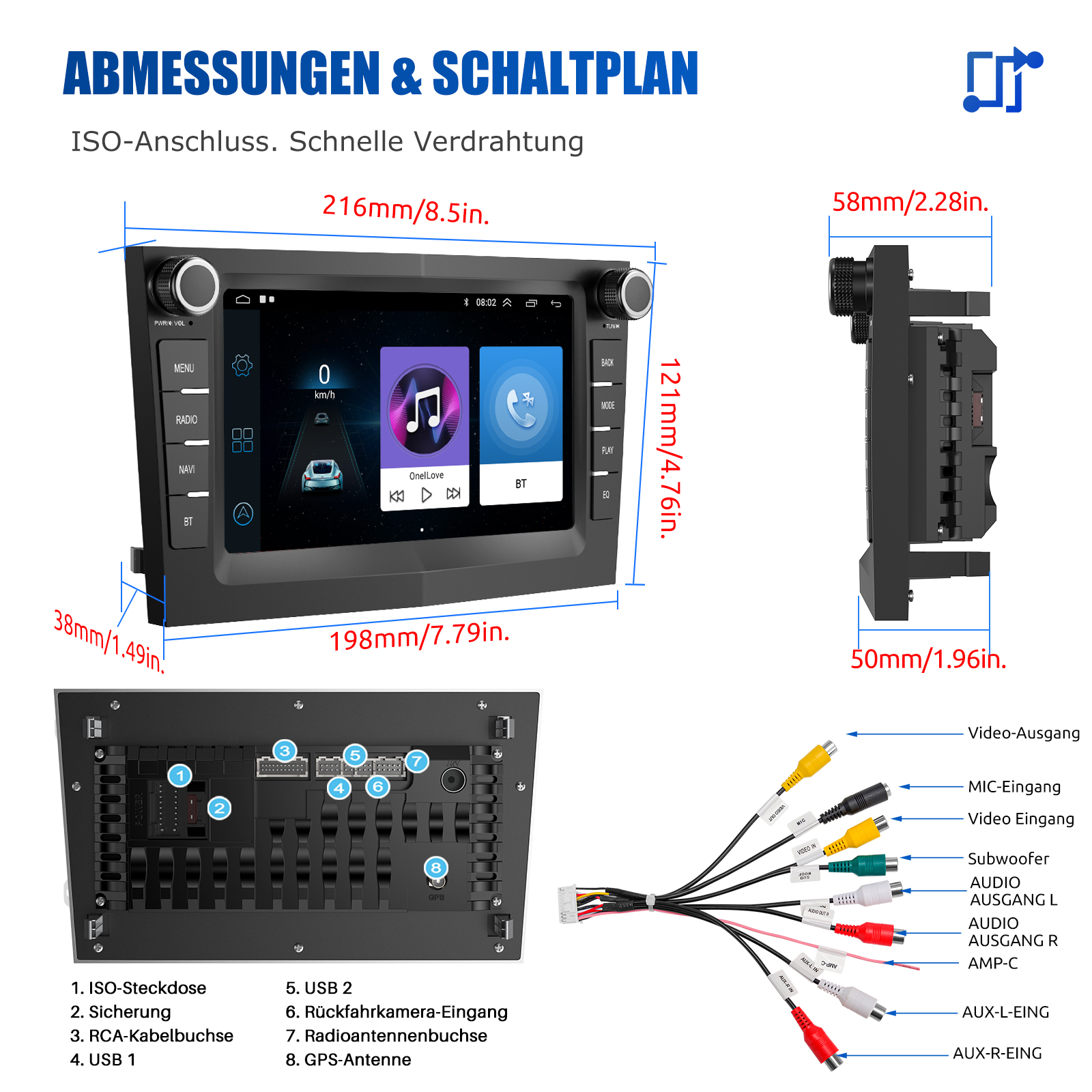 RDS/FM-Radio und Bluetooth und ASP Sound: Unterstützt Bluetooth 4.1, mit integriertem Mikrofon und Lautsprecher, damit Sie während der Fahrt freihändig telefonieren können. Unterstützt den Zugriff auf das Telefonbuch, die Musikwiedergabeschnittstelle usw. RDS unterstützt. Sie können 18 FM Radiosender speichern. Eingebauter ASP-Chip. Unterstützt 16-Band-EQ-Einstellung, die nach Ihren persönlichen Vorlieben eingestellt werden kann.Der Ihrem Originalsound sehr ähnlich ist.4 x 45W Verstärker, Surround-Sound und Subwoofer-Ausgang.