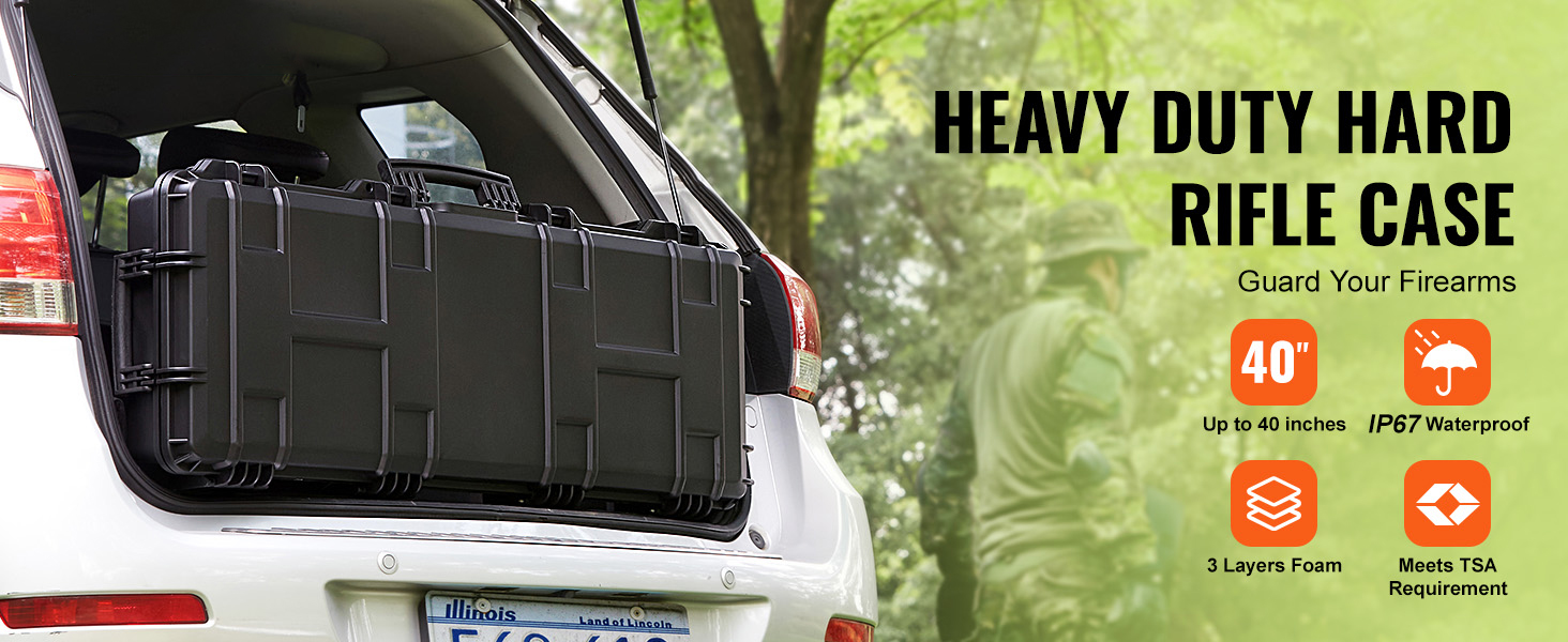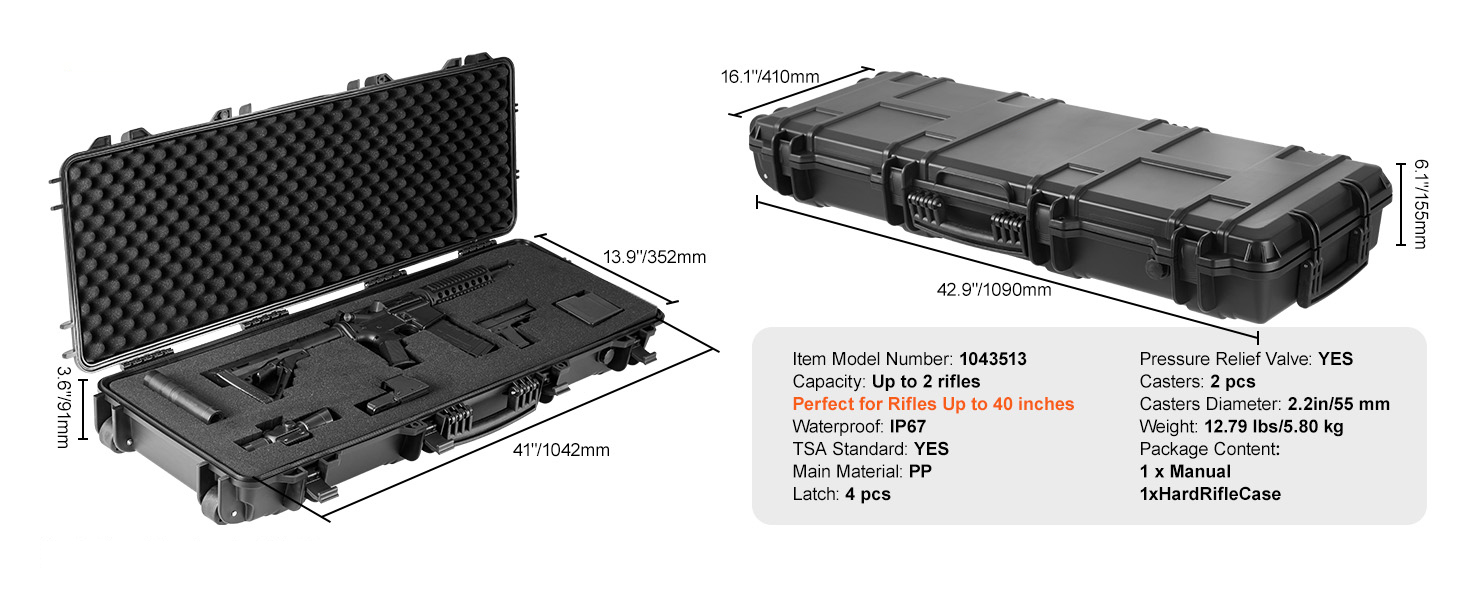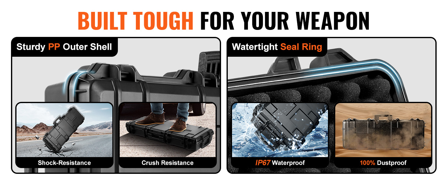 Defend your firearms from damage with this hard-shell rifle gun case. Crafted from high-impact PP material, our hard rifle case provides resistance against impacts, drops, and rough handling. The case is IP67 waterproof and 100% dust-proof, thanks to its watertight seal.
