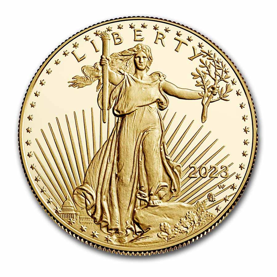 The classic Gold Eagle design gains even more collectibility with the Proof striking of each coin. Add this beautiful 2023-W Proof Gold American Eagle to your cart today!