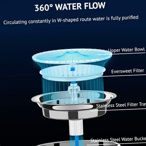Meet the Eversweet Wireless 3 Pro UVC - the latest ultra premium stainless steel and 1.8L large capacity pet water fountain by Petkit. With its upgraded UVC wireless pump feature, 304 stainless steel bowl, and 3 working modes, it's in a class of its own. Your pet's water will be so much cleaner with the UVC pump sterilizing your pet's water and killing harmful bacteria. The innovative wireless pump ensures a safe drinking experience by removing all exposed wires to eliminate electrical leakage. Enjoy clean and fresh water with multi-layer filtration that filters out hair and dust, removes unpleasant odors as well as heavy metals from your pet's water. The unit is working almost noiselessly at 25 dB, and you can enjoy a peaceful, uninterrupted sleep. You can also save the hassle of changing your pet's water bowl daily with its large 1.8L capacity. Simply use the Petkit app to check the water level and when to replace the filter! Note: This is not a wireless fountain and needs to be plugged in. Only the pump is wireless.