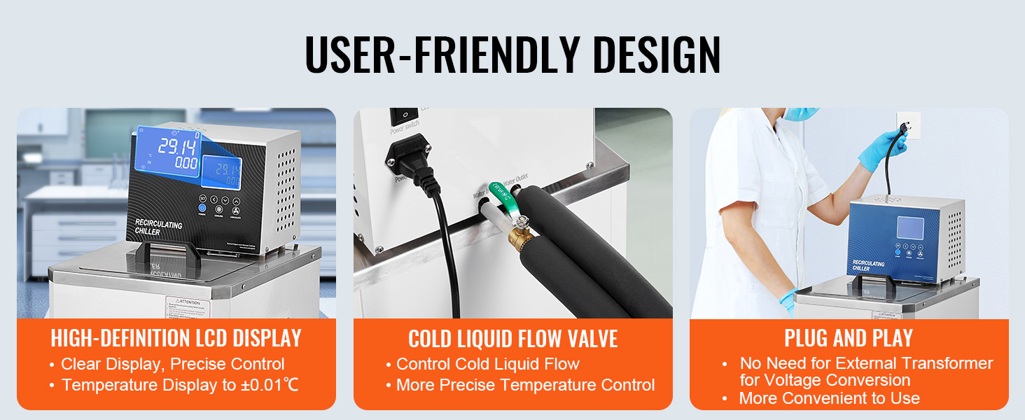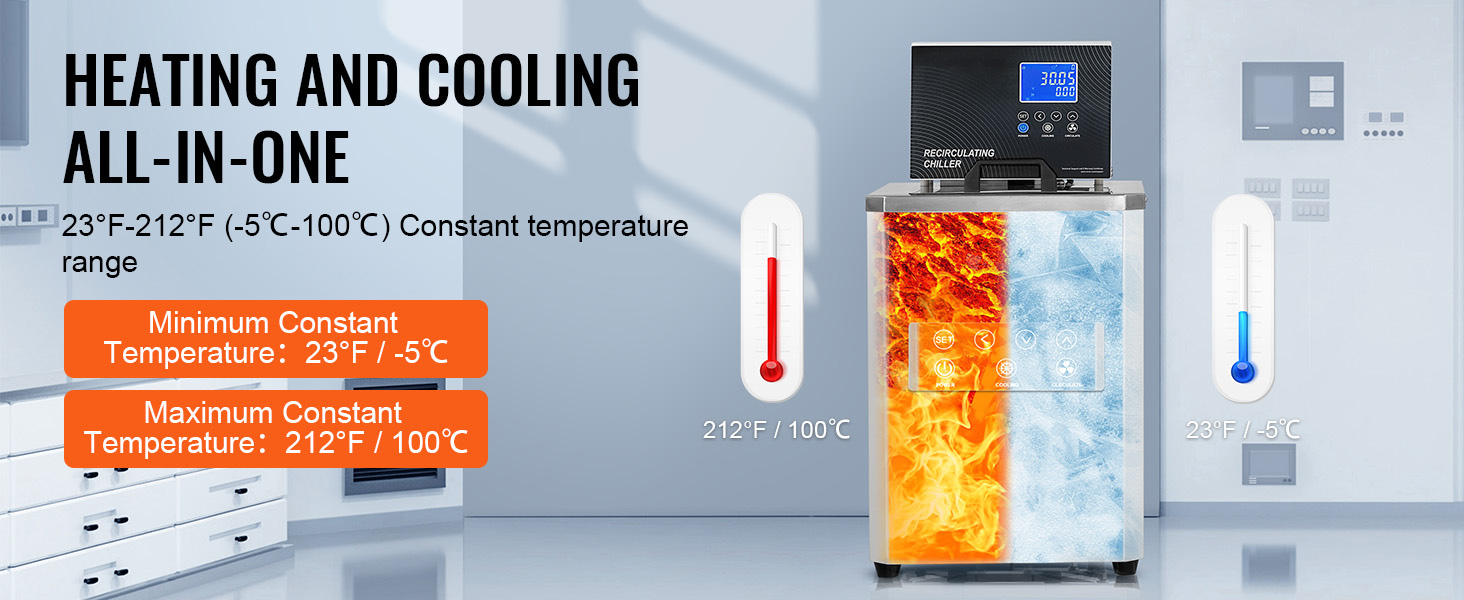 Our recirculating water cooling chiller is suitable for various laboratory environments, particularly for high and low-temperature experiments. It widely used in biotechnology, food processing, chemical engineering, metallurgy, chemical analysis, and petroleum industries.