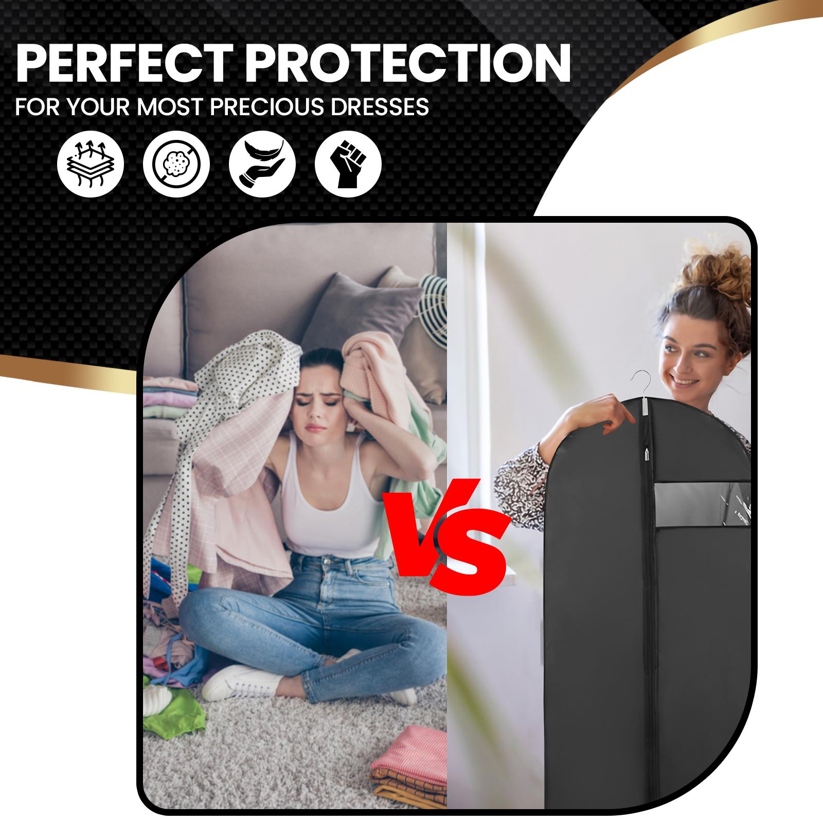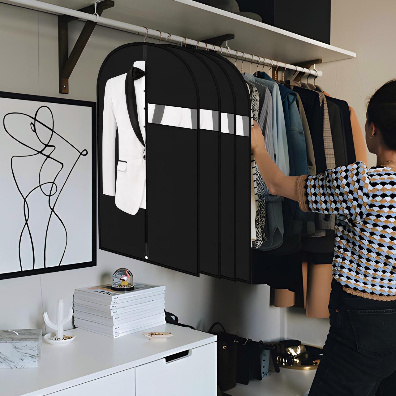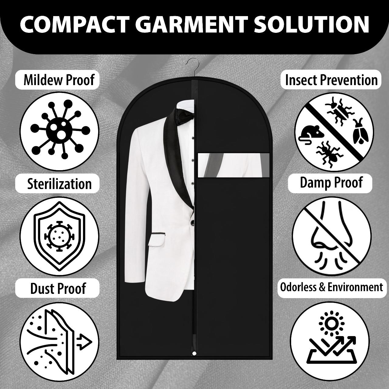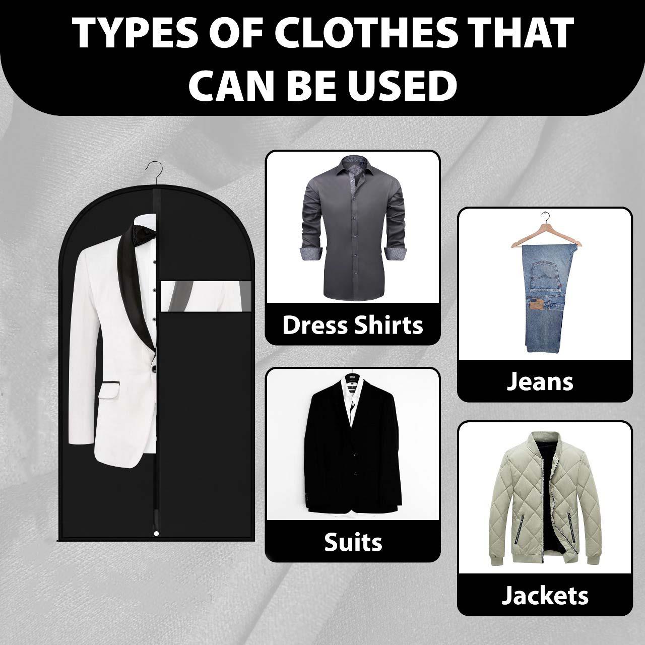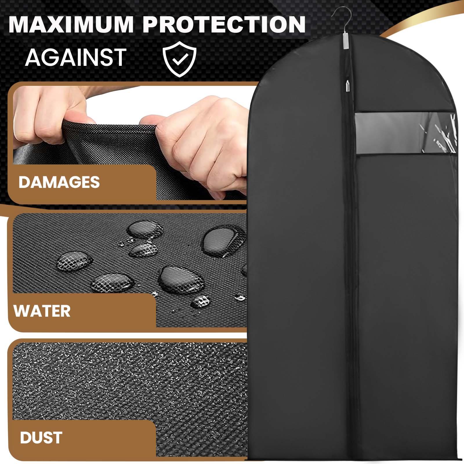 ✔️PREMIUM PROTECTION FOR YOUR CLOTHES - Keep your suits, dresses, and coats pristine with our high-quality PEVA material cover that is lightweight, breathable, and waterproof. Protects against dust, mildew, insects, pet hair, ensuring your clothes remain clean, tidy, and wrinkle-free.
