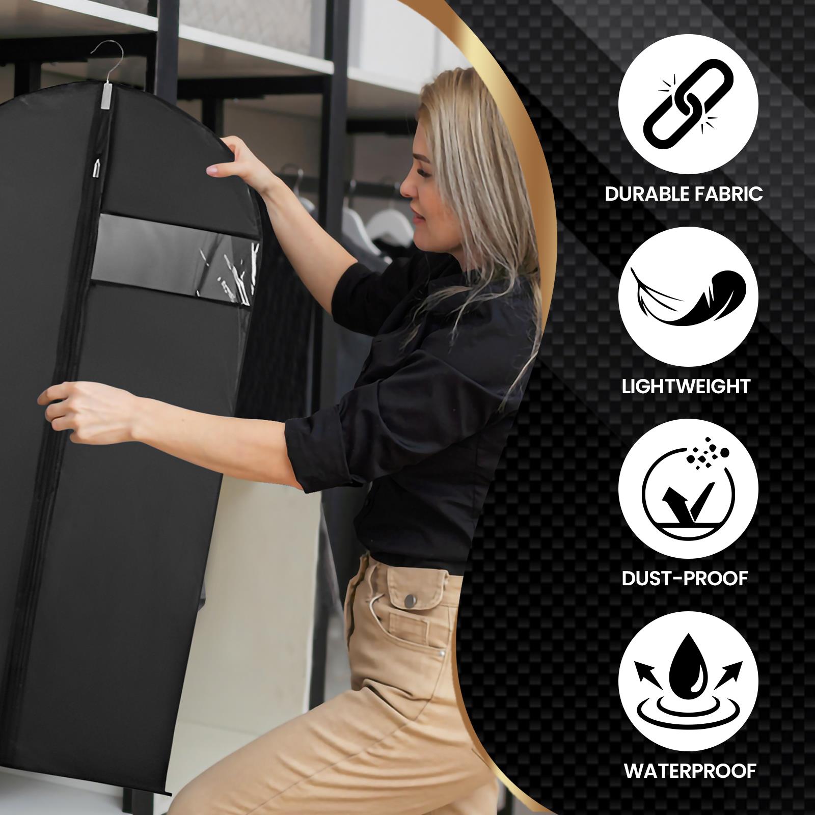 ✔️EXTRA LONG AND VERSATILE - Measuring 48 inches, our garment bag is ideal for a wide range of clothing, from suits and dresses to jackets, coats and trousers. Its versatility makes it an essential addition to any wardrobe or travel kit.