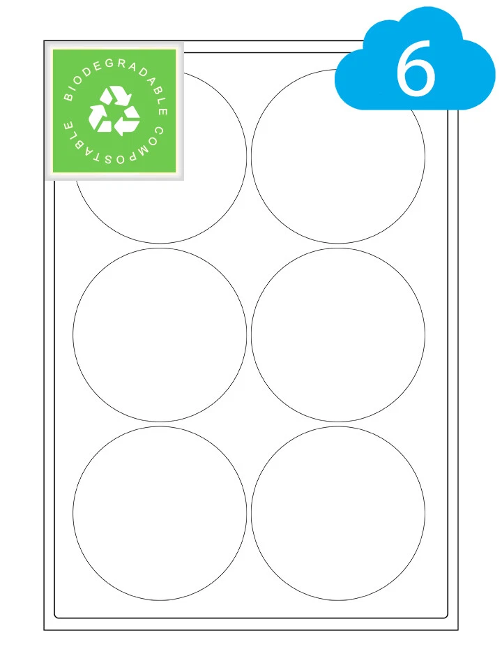 A4 Sheets Of Biodegradable & Compostable Eco Friendly Round Labels