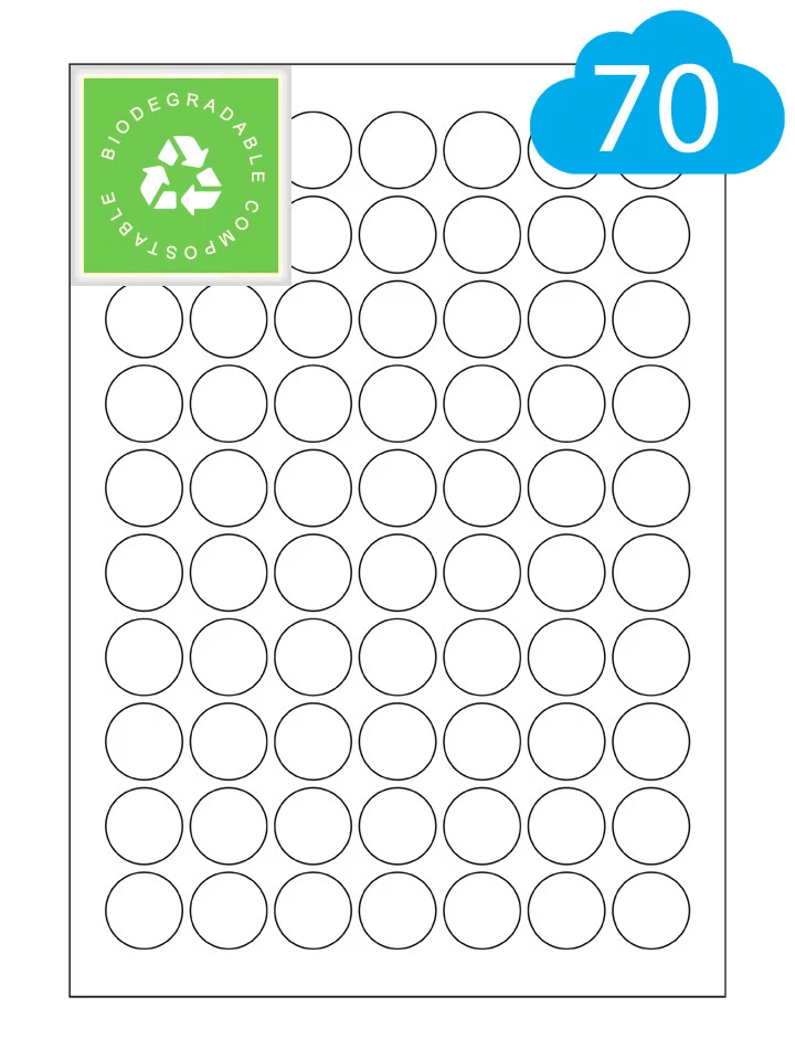 A4 Sheets Of Biodegradable & Compostable Eco Friendly Round Labels