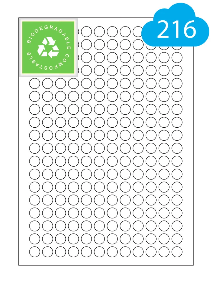 - 216 Round Labels Per A4 sheet - 13mm Diameter - CL21613BIOR