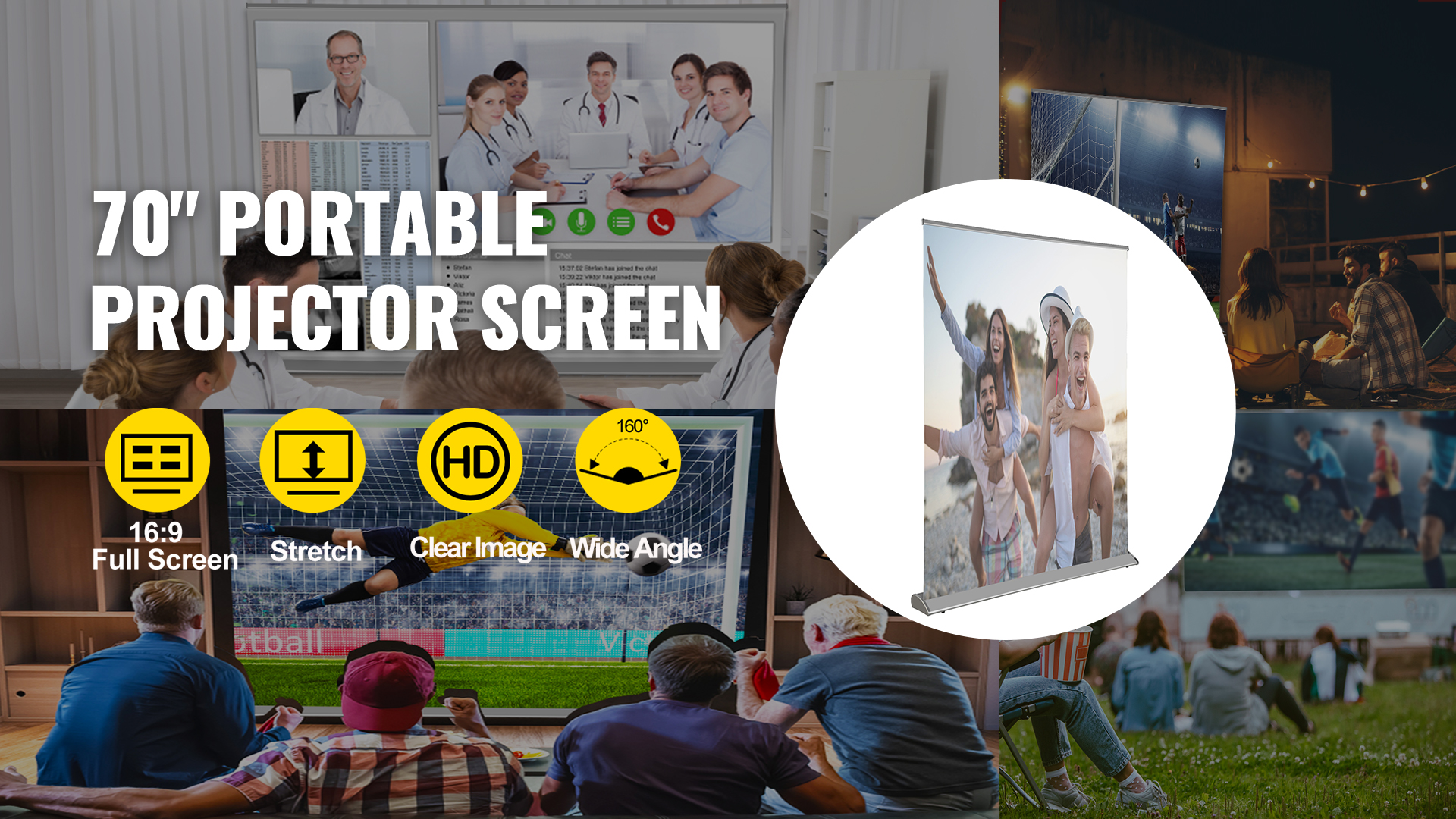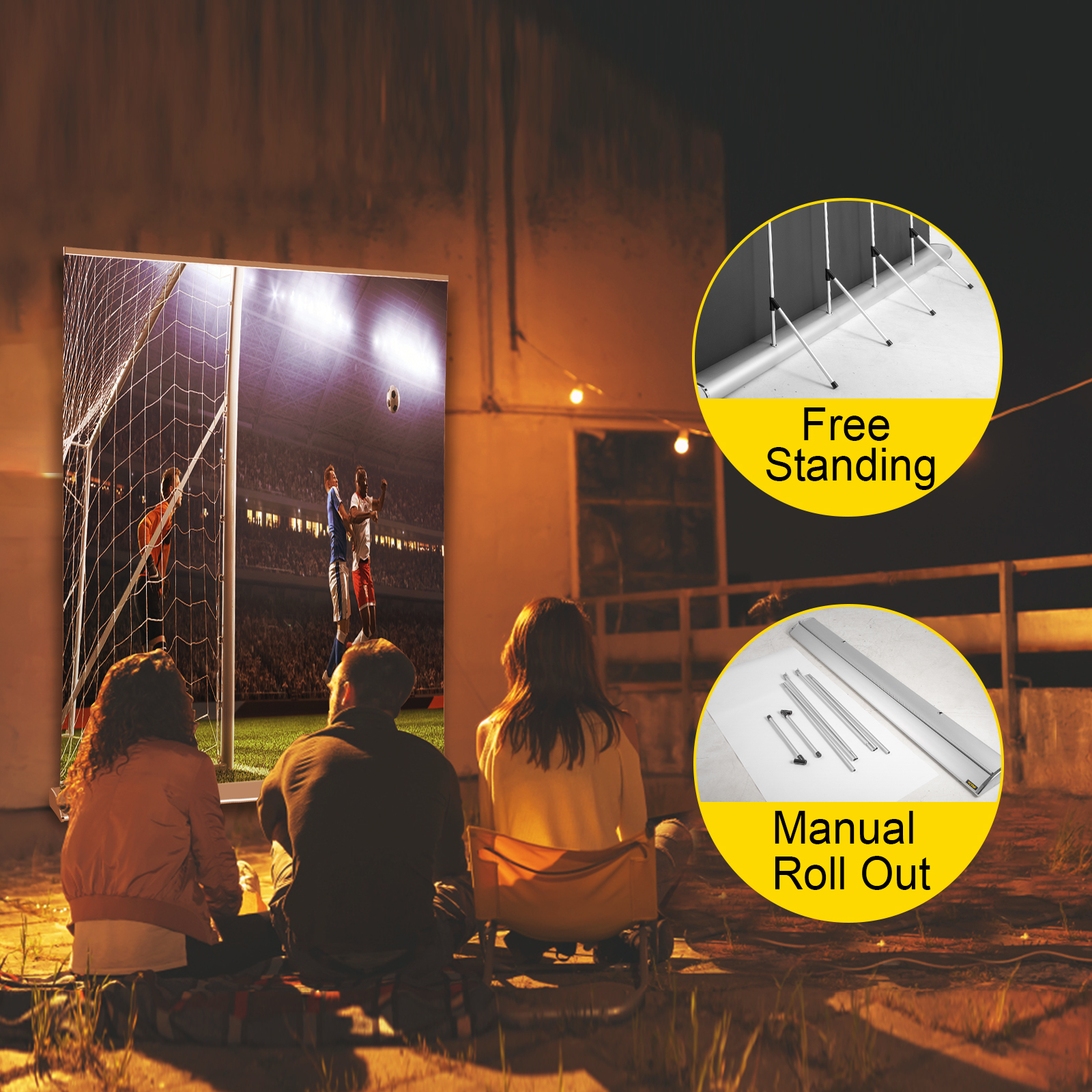 Our brilliant projection screen is the ideal compact and travel-friendly option. Great for home cinema, public display, business meetings, indoor viewing parties, as well as outside camping or movie.