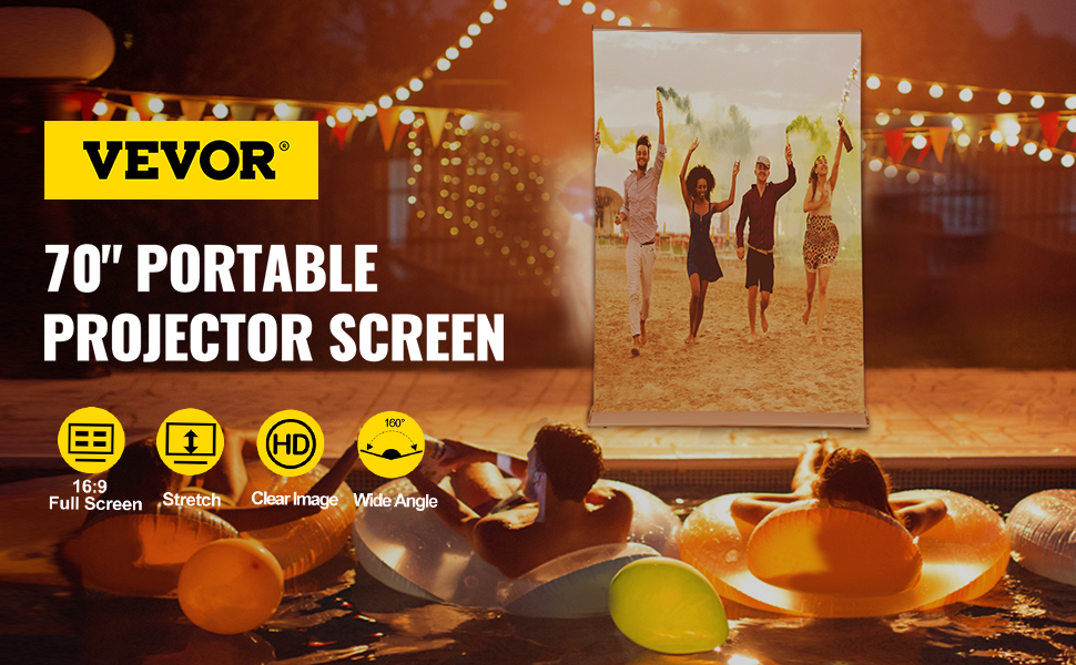 Our portable projection screen features 16:9 8K/4K HD and a 160-degree viewing angle, providing clear and vivid imagery. It delivers impressive gains and contrasts for you and allows for incredible visuals. This video screen is perfect for home theater, schools, offices, weddings, and even outdoors like camping and backyard movie night.