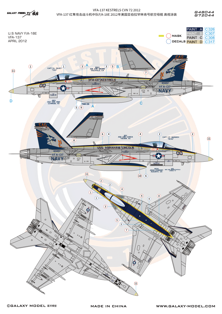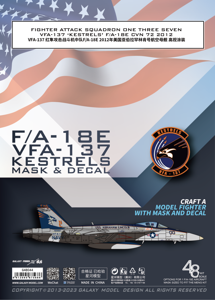Galaxy G48044 1/48 FIGHTER ATTACK SQUADRON ONE THREE SEVEN VFA-137‘KESTRELS’F/A-18E CVN72 2012