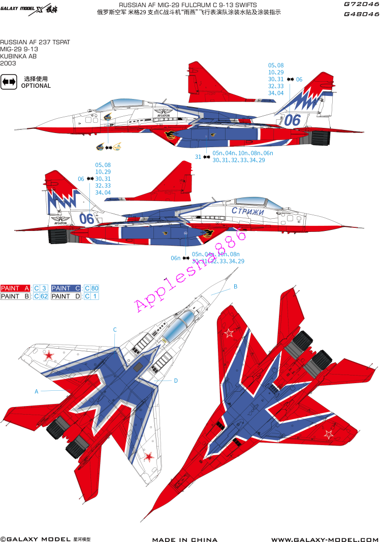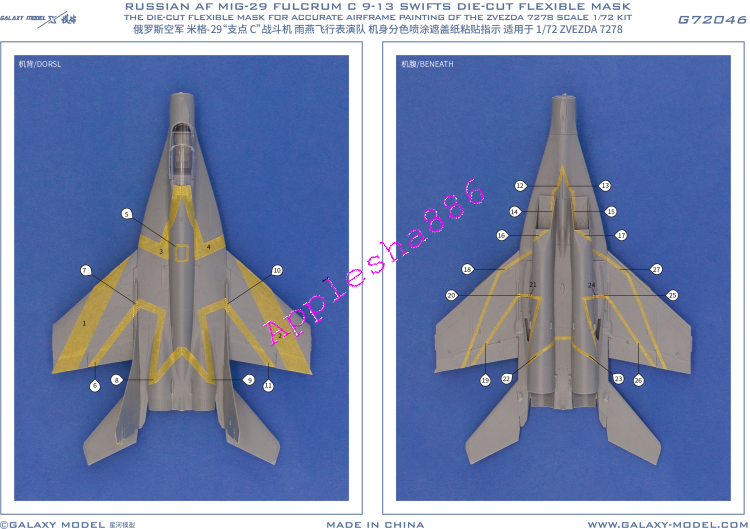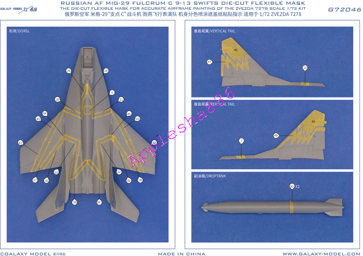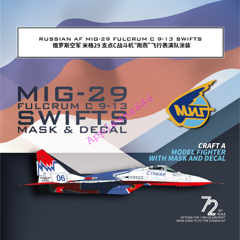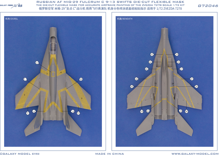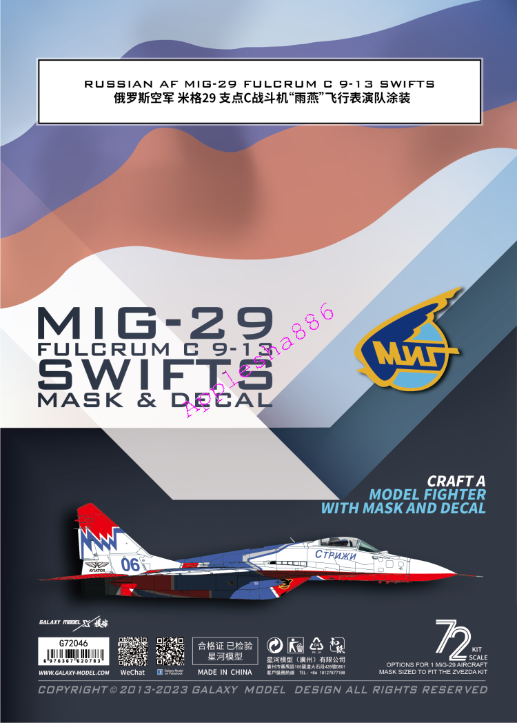 Galaxy G72046 1/72 "RUSSIAN AF MIG-29 FULCRUM C 9-13 SWIFTS MASK & DEGAL