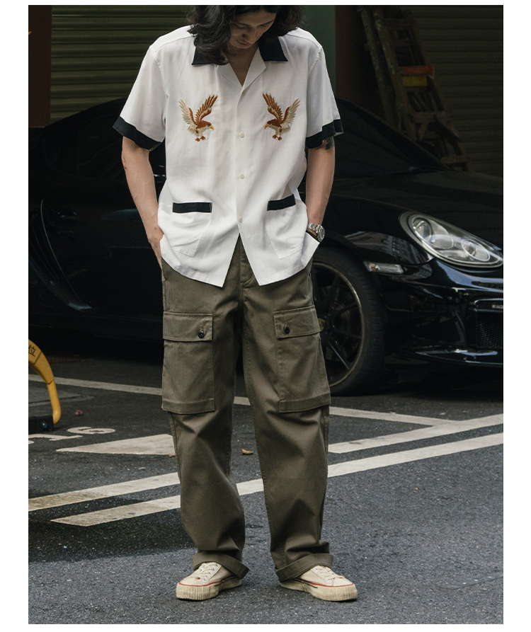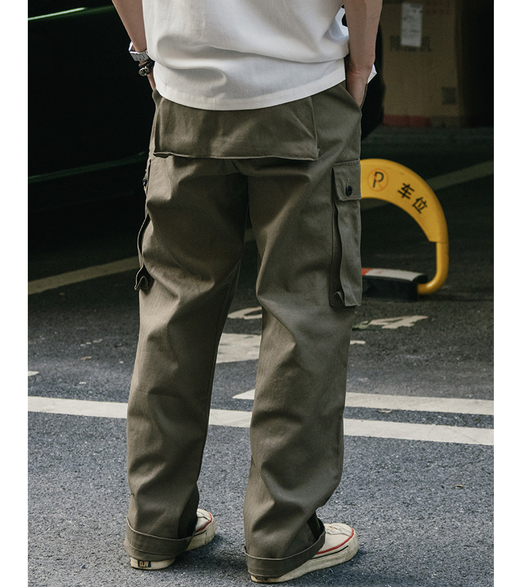 The prototype is based on the USMC P44 herringbone twill fatigue pants. The original version was made of 8.5-ounce lightweight herringbone twill, suitable for summer or hot regions. This pant is made from 13-ounce herringbone twill, and could be defined as a private custom version for civilians. The storage pockets on both sides are moved down and slant pockets are added for better practicality, while the fly remains buttoned.