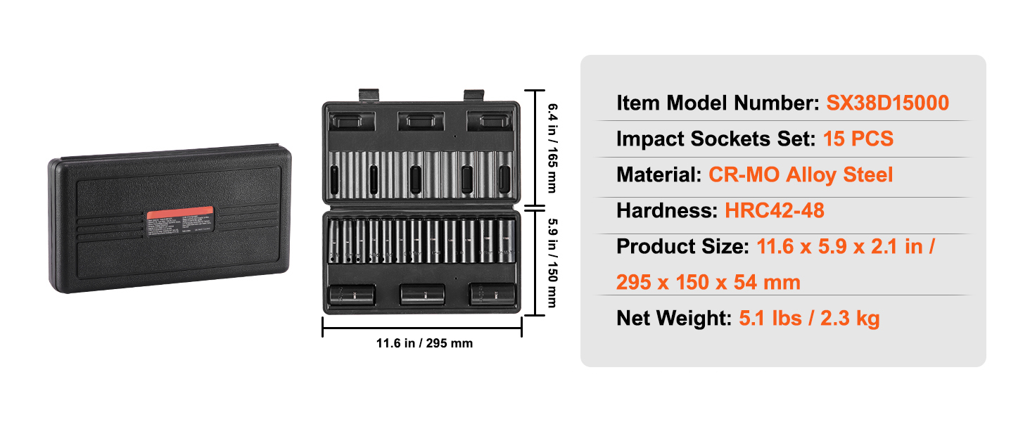 Are you looking for a professional and portable set of impact sockets? VEVOR's 15-piece impact socket set offers a complete range of tools, especially suitable for repairing different brands of automobiles.