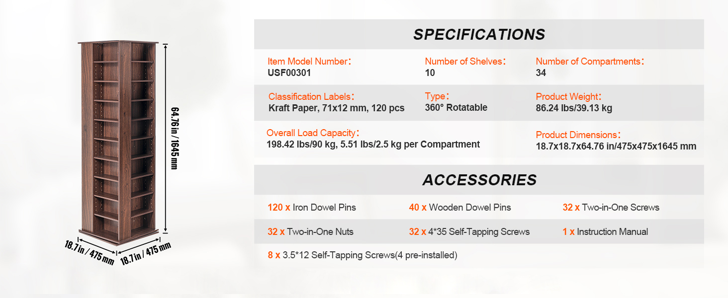 Multi-functional Storage Cabinet: Need a space that stores your music and movies while showcasing precious memories and collections? Our rotating media shelf meets all your needs, accommodating CDs, DVDs, books, and more, adding a personalized touch to your collection.