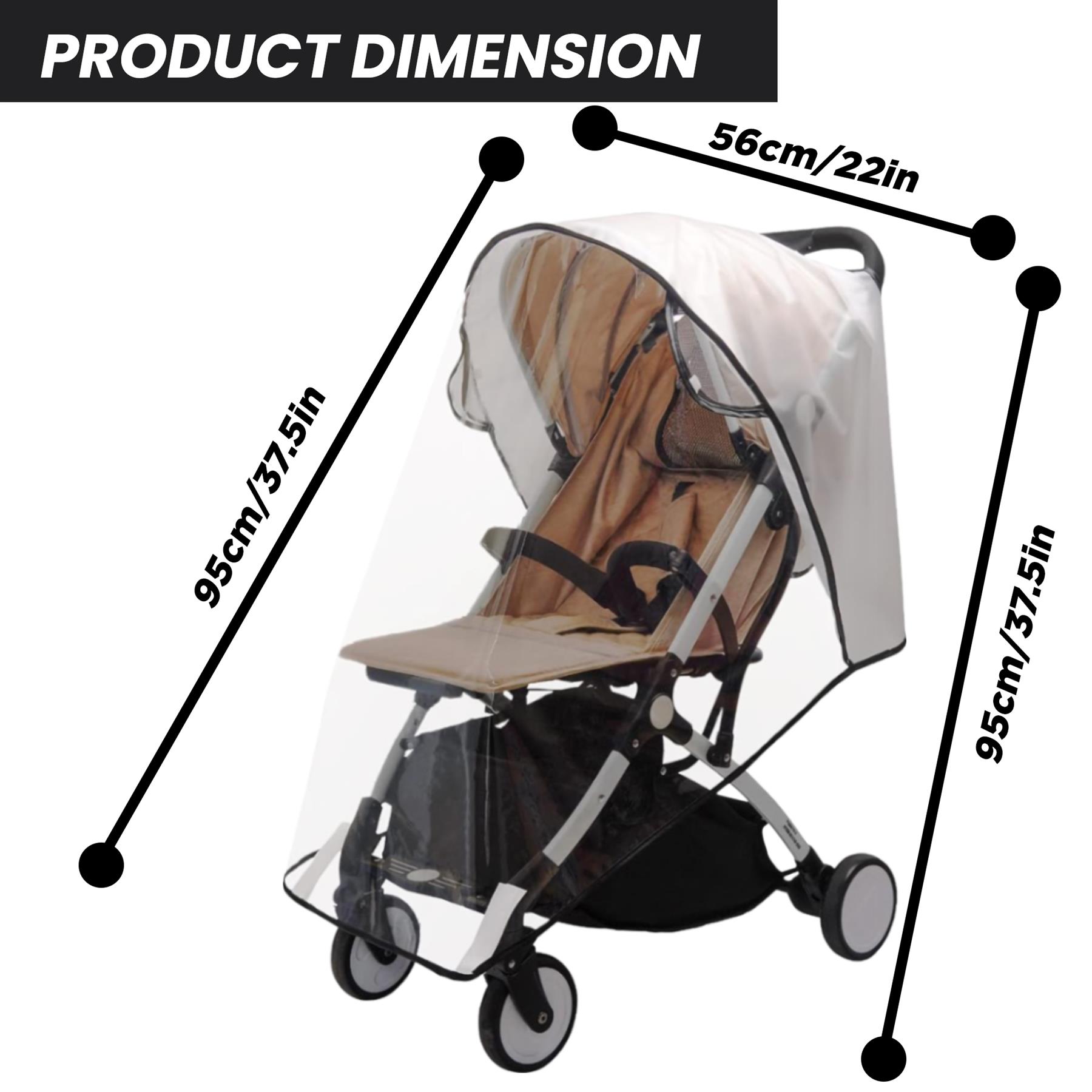Experience unparalleled protection for your baby with our Universal Stroller Rain Cover. Engineered with the finest PEVA material, this cover is the ultimate defense against unpredictable weather conditions. From rain and snow to wind and dust, your baby stays shielded while you enjoy peace of mind. Our rain cover features a crystal-clear design, offering a seamless view of your baby. This design also ensures easy access, enhancing convenience and keeping your little one comfortably visible. Breathability is key, and our rain cover delivers with strategically placed air vents. These vents promote optimal airflow, preventing overheating and ensuring your baby stays cool and comfortable, no matter the weather outside. Easy to use. Installation and fit are effortless thanks to the included Velcro straps. Designed to fit most pushchairs, prams, and buggies, this cover stays securely in place, even on windy days. The cover's adjustable fit makes it versatile and easy to use, providing reliable weather protection. Crafted from durable, non-toxic PEVA material, this rain cover is safe, eco-friendly and resilient. It withstands wear and tear, maintaining its effectiveness and appearance over time. It's lightweight yet strong, ensuring long-lasting performance through countless weather conditions. Whether you’re navigating a rainy day, a snowy adventure, or a windy stroll, this universal rain cover is your go-to solution for maintaining your baby's comfort and safety. It's more than just a cover—it's your assurance that your child is comfortable, protected, dry, and happy. Universal Rain Cover - for Pushchair, Pram, Buggy, Stroller. Embrace convenience, clarity, and comfort with every outing. Order now to experience the ultimate in baby weather protection!