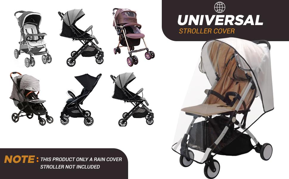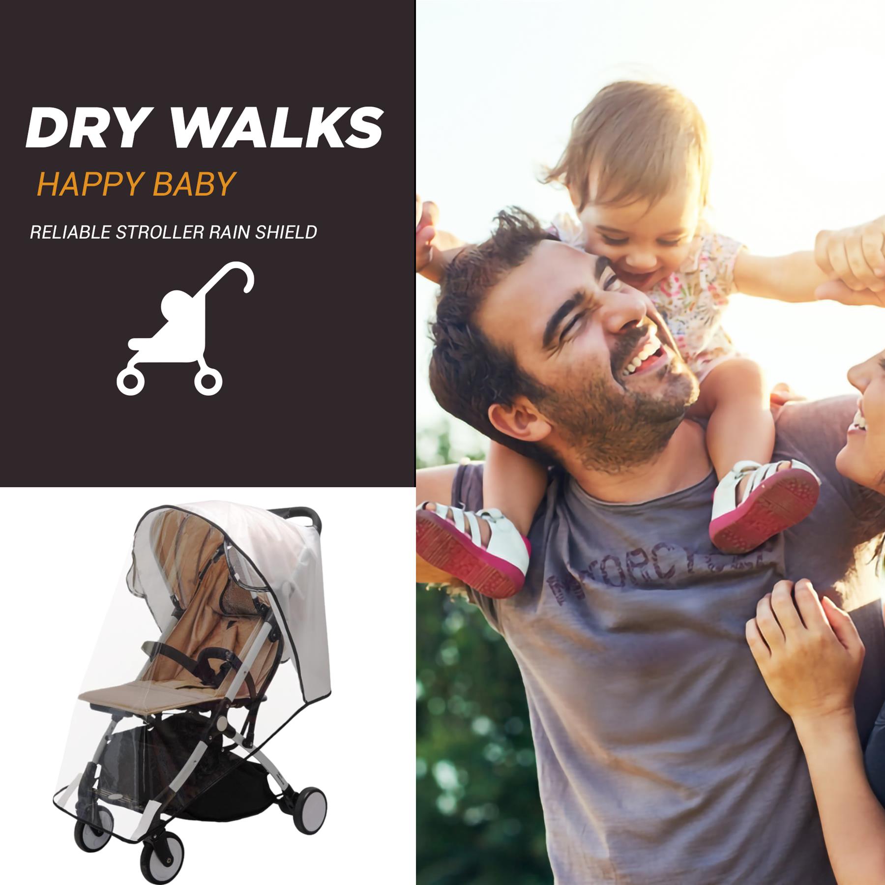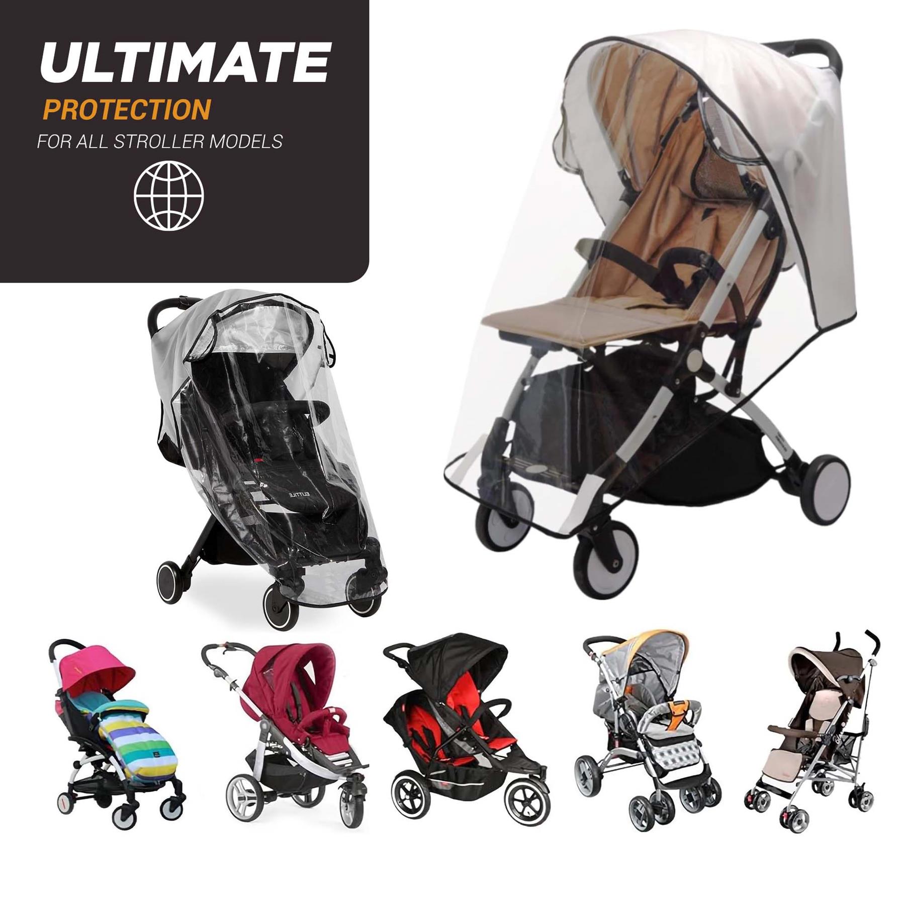 Universal Rain Cover Transparent Weather Shield for Pushchair Pram Buggy Stroller Waterproof Breathable Durable Weather Protection Sun Dust Snow with Velcro Straps Vent Holes Travel Clear