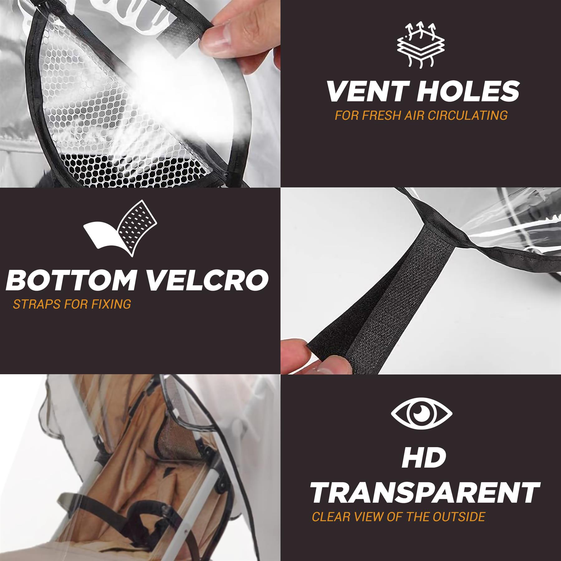 ✔️OPTIMAL AIR CIRCULATION - Say goodbye to discomfort! Our stroller rain cover features strategically placed air vents to ensure continuous airflow, preventing overheating and keeping your baby cozy and cool in all conditions.