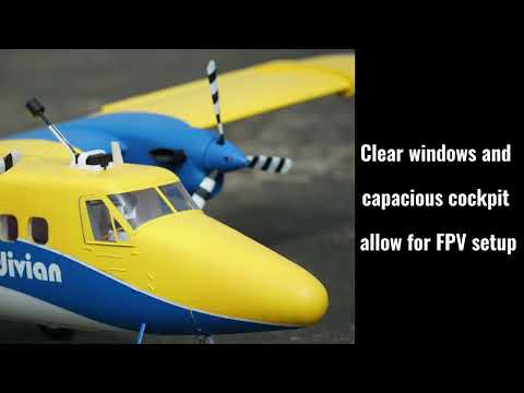Two-piece wing, removable nose and stabs make it easy to assemble, dissemble and transport. Clear glass-like windows allow for FPV installation in the cockpit for better visual experience. Clearly visible in both day and dusk conditions, the vibrant yellow/blue colour scheme and the pre-installed LED lights not only add scale appeal but practical visual reference in the sky.