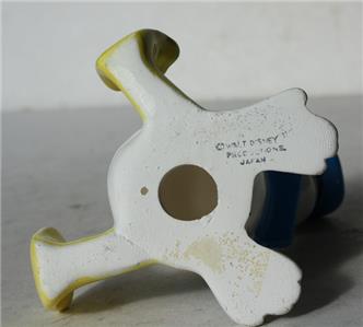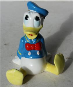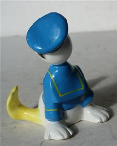Here is a great vintage ceramic porcelain hand painted Made in Japan Walt Disney Productions Donald Duck Sitting with Outfit Looking Up Great Face Figurine. It is Adorable. It is marked on bottom-SEE ALL PHOTOS. It measures about 3 1/4 inches tall and about 3 inches wide. Grab this great vintage collectible while you still can it will not last long.