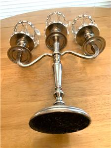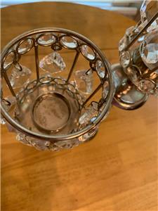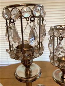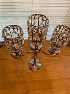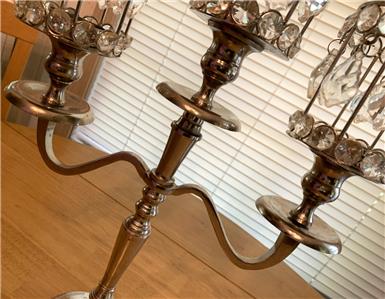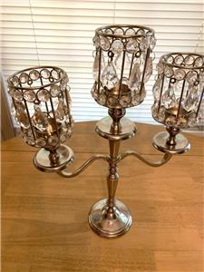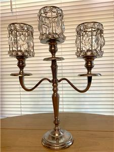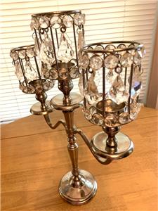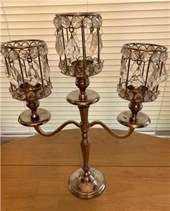 Candelabra 3 Arm Candle Holder Gold Tone Wedding Home Table Centerpiece Crystal Prisms