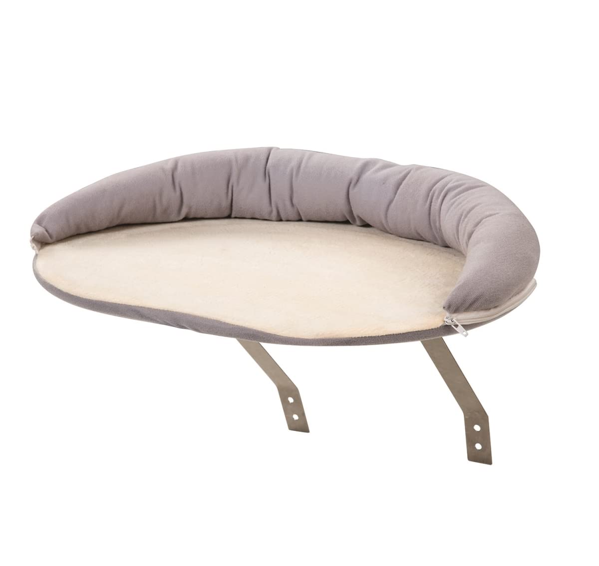 For kitties who love to park themselves in a window and watch the outside world, this cozy cat window perch offers a luxurious place for them to relax. Sturdy ledge gives your fur baby more room to stretch out on the window sill by attaching directly to it with hook and loop tape strips and metal support brackets (both included). It can be more permanently secured with the included screws. Platform is topped with a plush pad, bordered on one side by a cushioned ridge in contemporary gray. Pad is covered in a super soft, removable and hand-washable fabric (just unzip to remove), giving cats a comfortable place to sunbathe and sleep. An ideal way for pet parents to spoil their kitties while protecting window frame surfaces, the cat perch makes a useful housewarming, birthday or holiday gift. Measuring 9.6"H x 17.5"W x 13.4"D, the perch has a weight capacity of 20 lbs. using just the bracing brackets, and supports 35 lbs. when screw-mounted to a wood sill. **We highly recommend permanently attaching the unit to the window sill with the included screws**