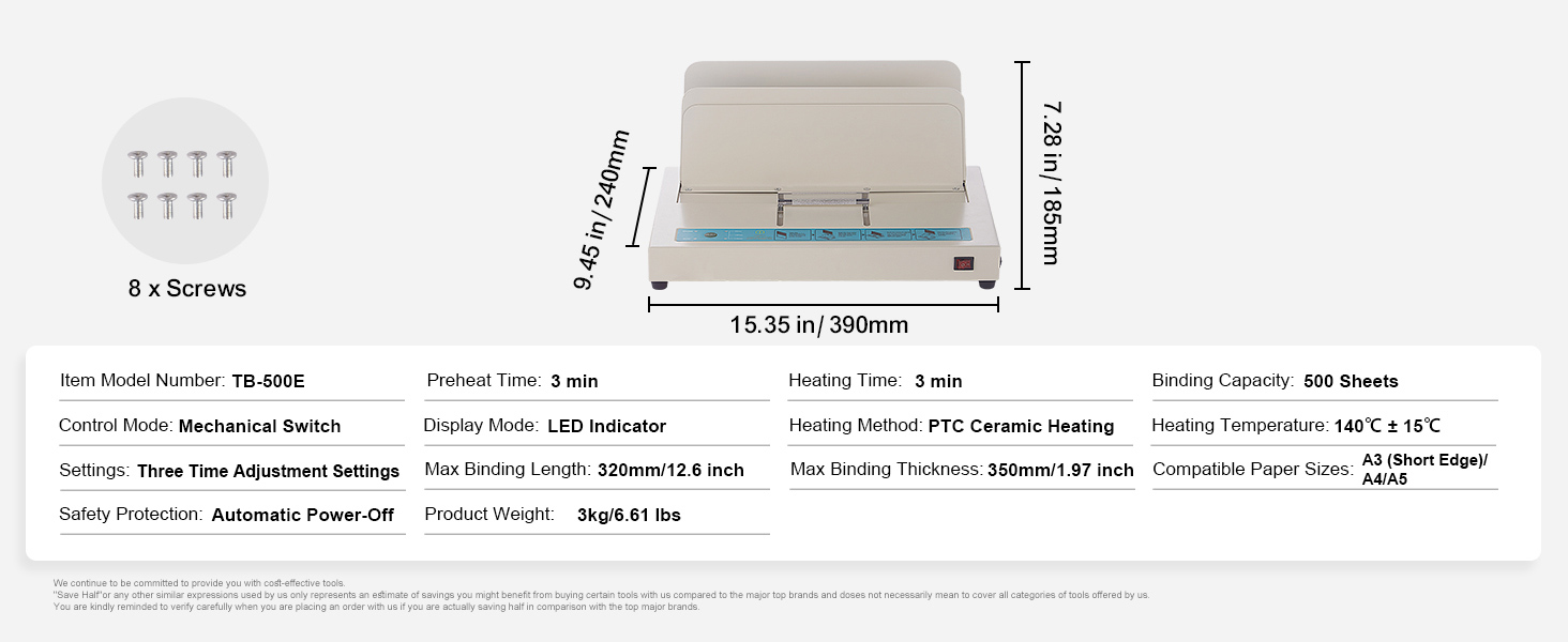 Safe and Efficient: The auto power-off design makes binding safer. Our thermal binder shuts off automatically after 10 minutes of inactivity and 12 minutes post-preheat without operation, giving you peace of mind. Dual buzzers and infrared photoelectric detection ensure reliability working.