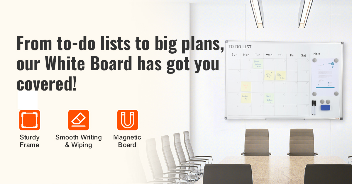 Our white board's magnetic surface can hold onto erasers and markers, making them easily accessible whenever you need them. Plus, you can use the magnets to effortlessly display your documents or post sticky notes.