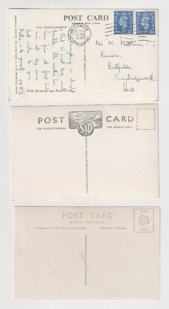 8 items, includes Grasmere, Hawkshead etc, mixed lot. Postally Unused. Condition mixed, see scans, a few of the real photo cards may be curling at the edges.