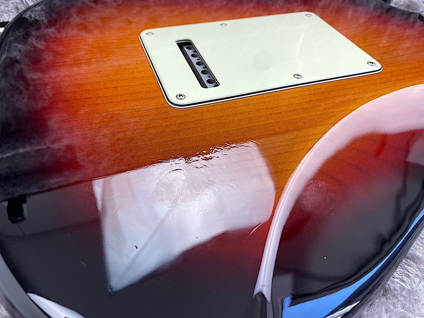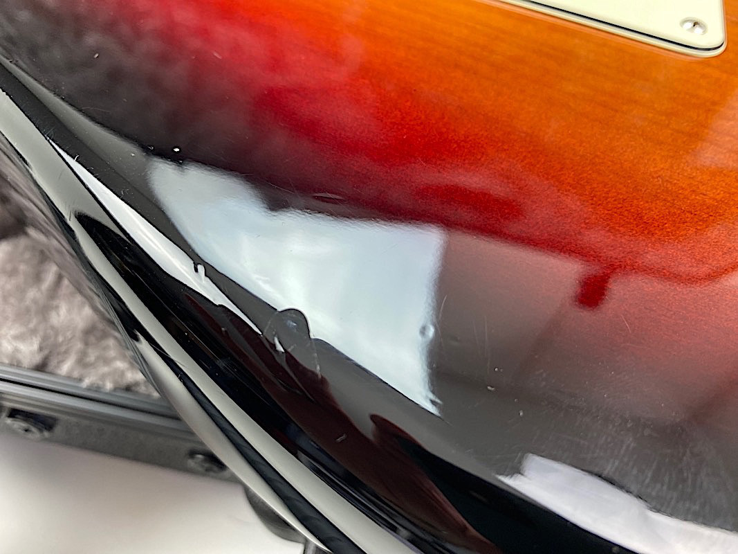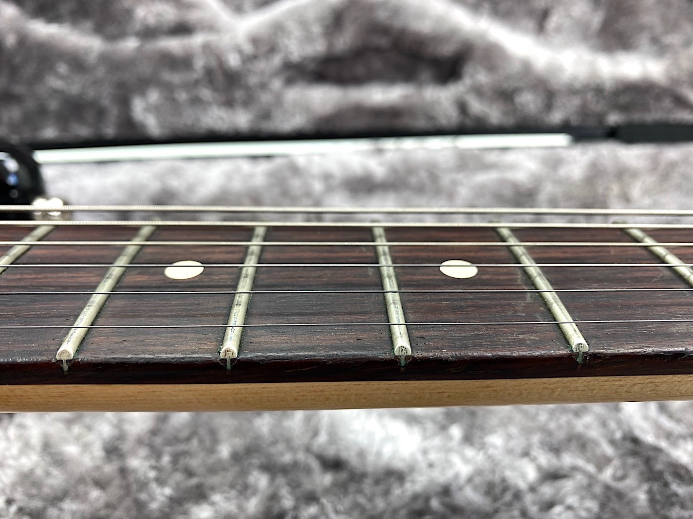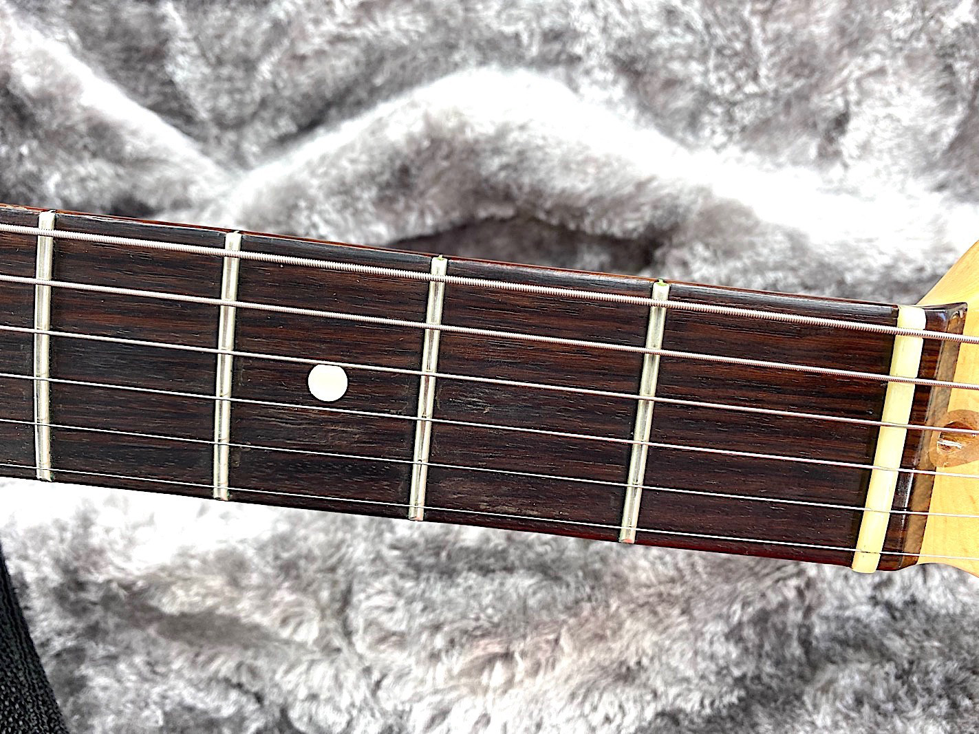 Sie kaufen exakt die auf den zahlreichen Bildern abgebildete gebrauchte Gitarre mit dem ebenso gezeigten Zubehör. Die altersbedingten Gebrauchsspuren gehen hieraus i.d.R. gut hervor. Eine kurze Zustandsbeschreibung finden Sie auf dem ersten Foto dieser Anzeige.