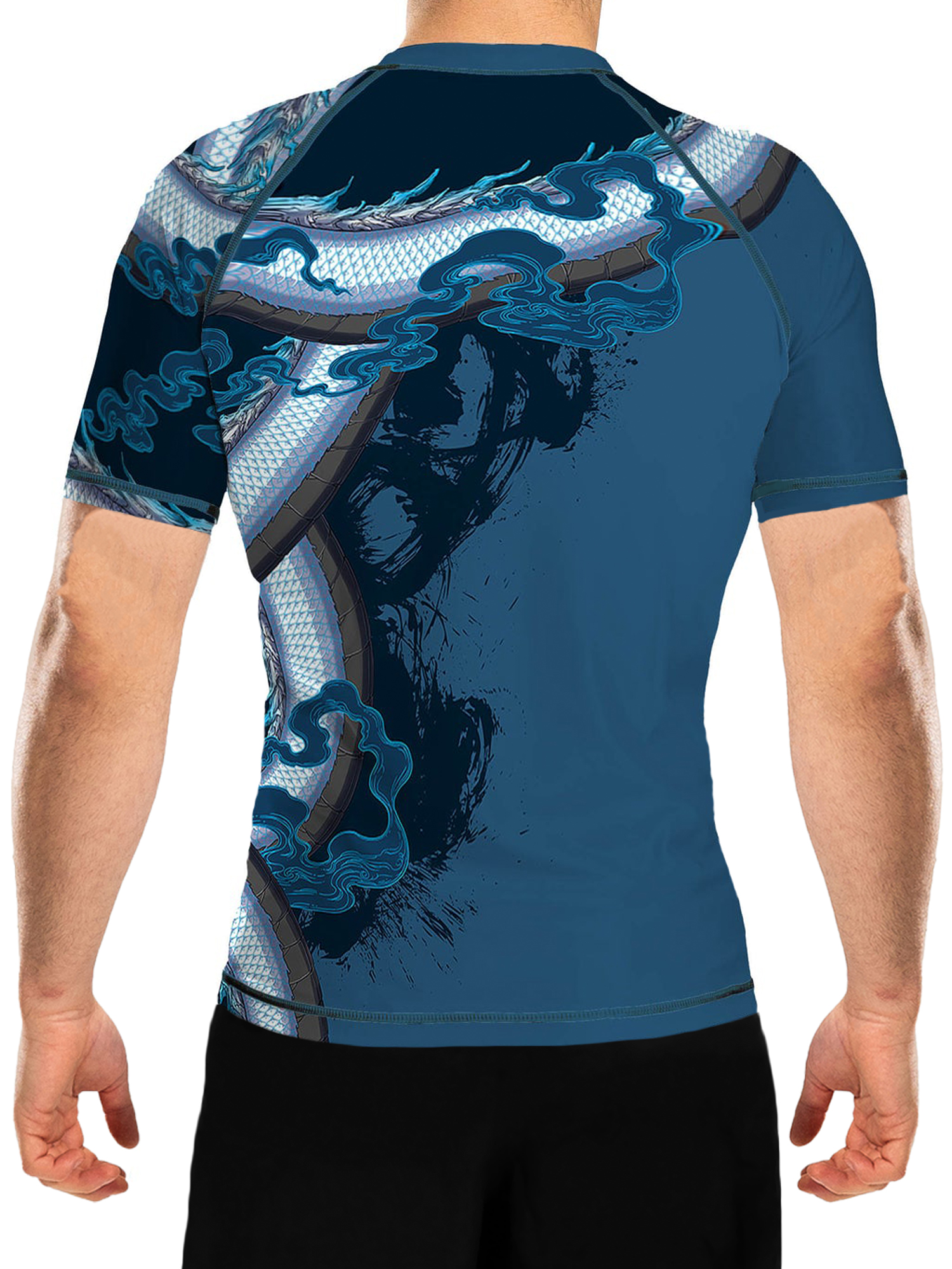 Raven Fightwear Men's Year of the Dragon Rash Guard Short Sleeve BJJ MMA Blue