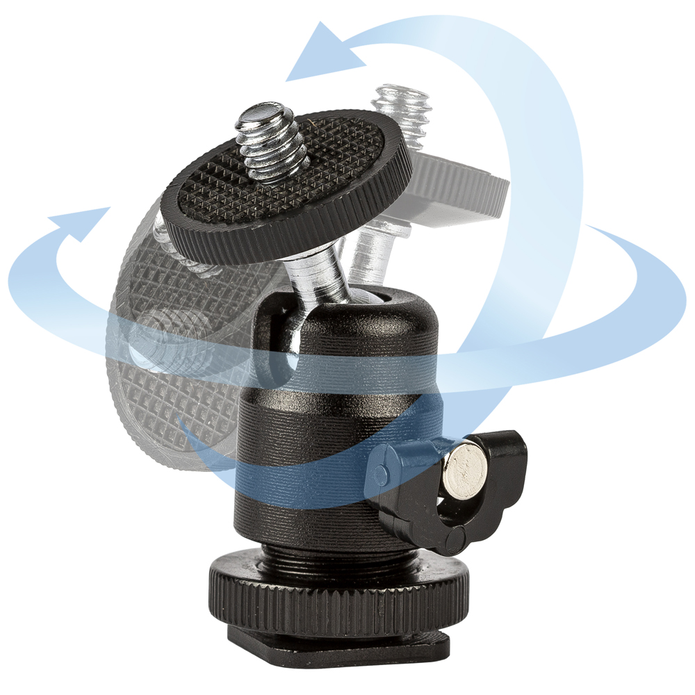 Monitor Flash Bracket Hot Shoe 360 Degree Mount Adapter Swivel Ball Head to 1/4'' Screw Mount for DSLR Camera
