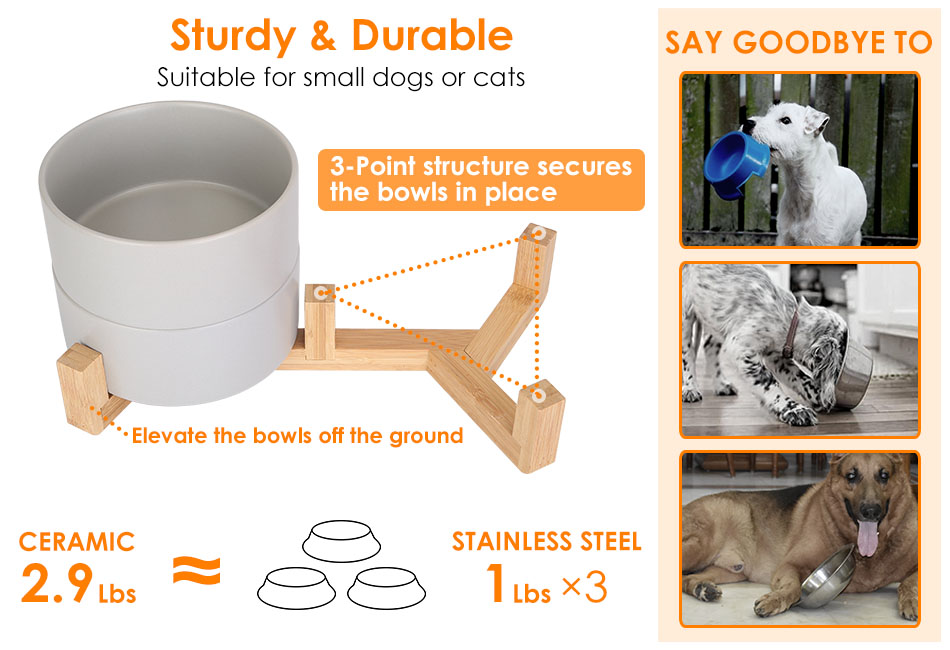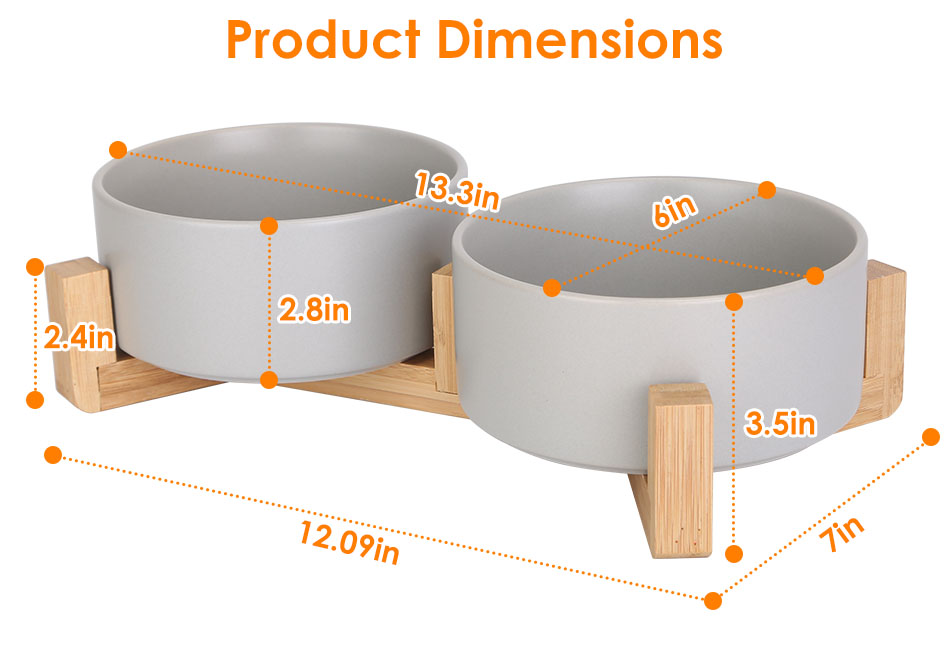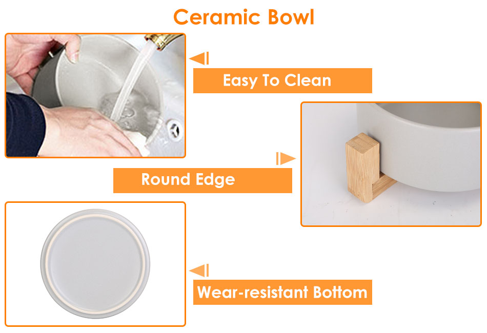 - Decorative Design:The grey ceramic bowls and the minimalist wooden stand not only provides a feeding solution,but also adds a touch of elegance to your pet's feeding area.