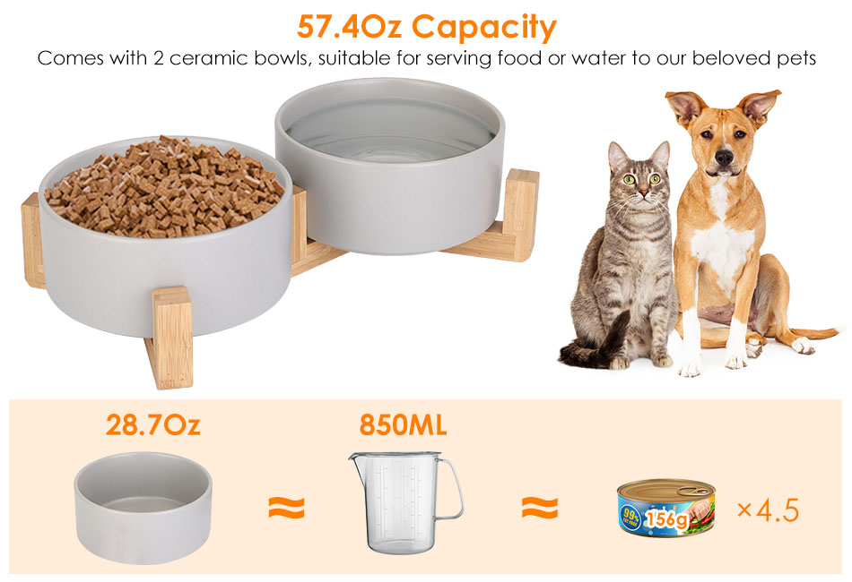 - 57.4Oz Bowl Capacity:Come with 2 ceramic bowls,each features a capacity of 28.7Oz,suitable for serving food or water to our beloved pets. Widely used for small dogs or cats.