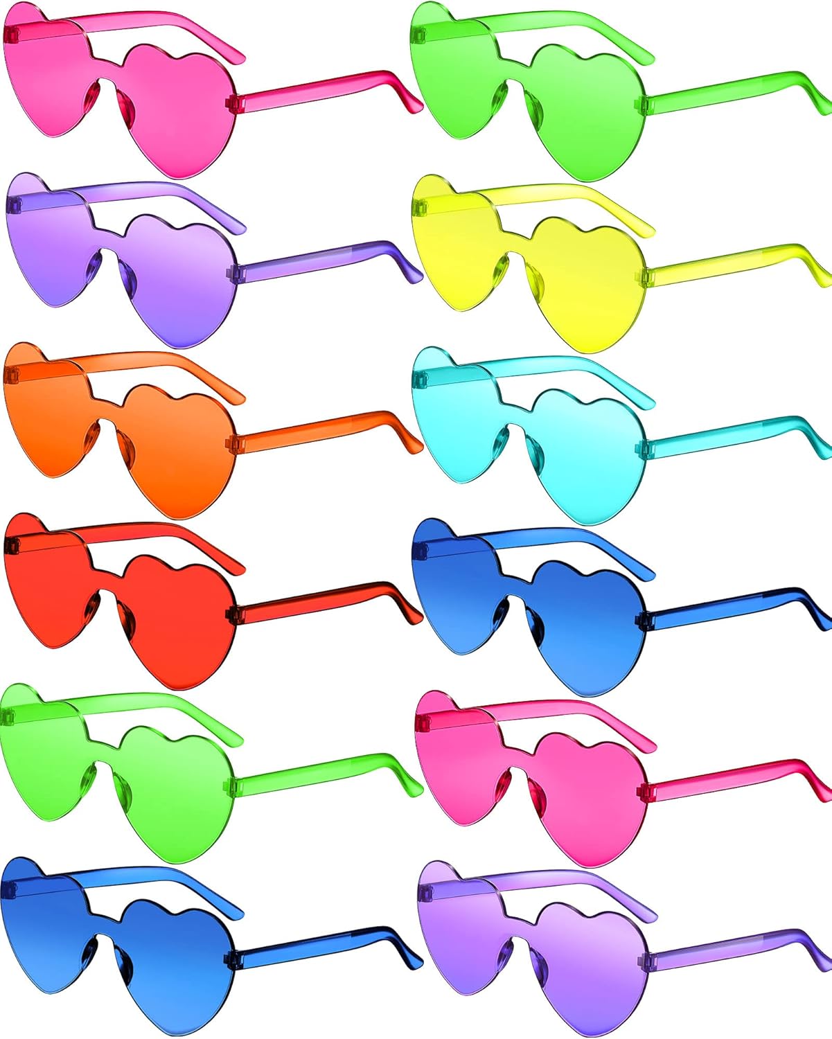 Photect 12 Pair Heart Sunglasses Colorful Glasses Neon Color