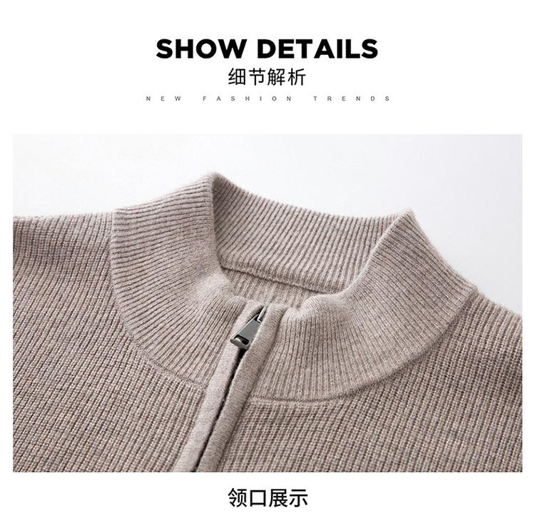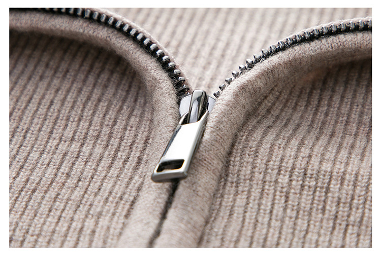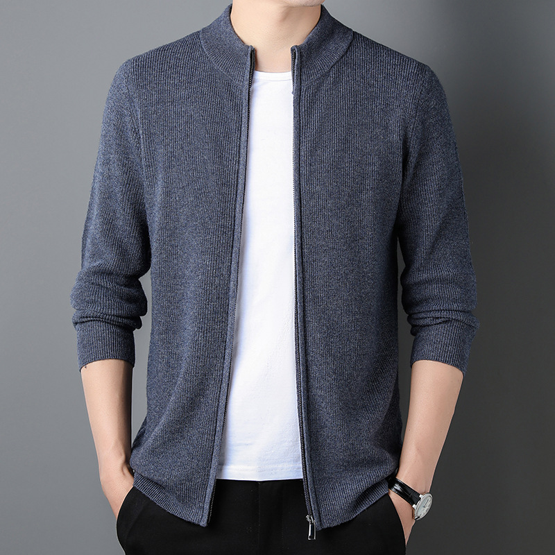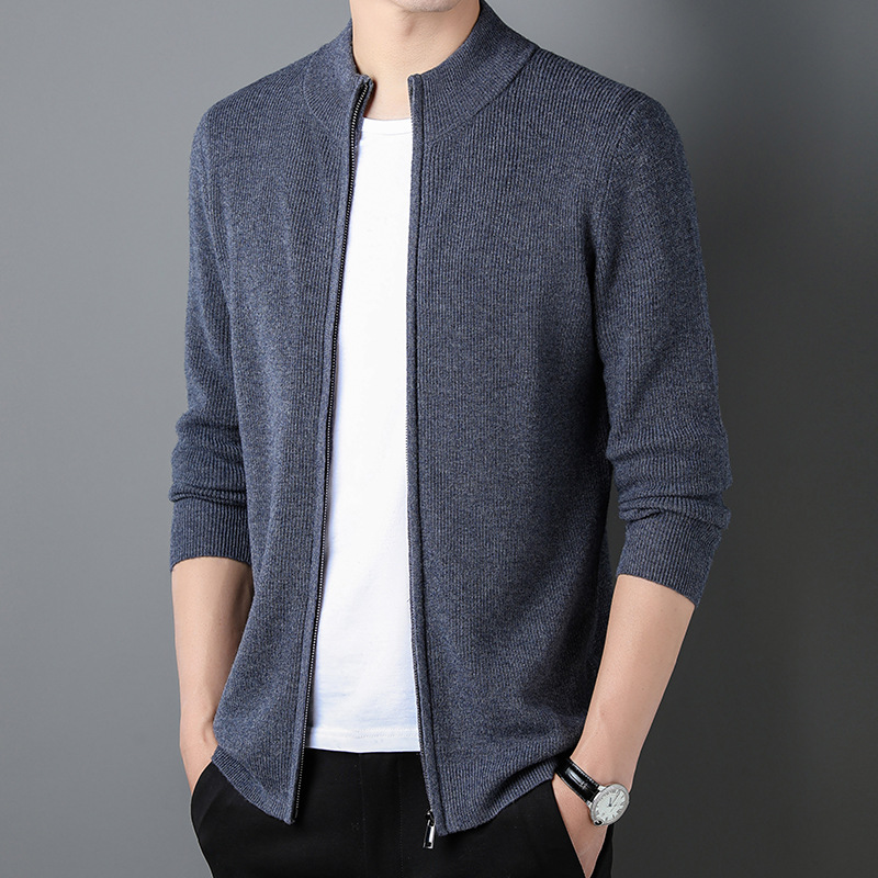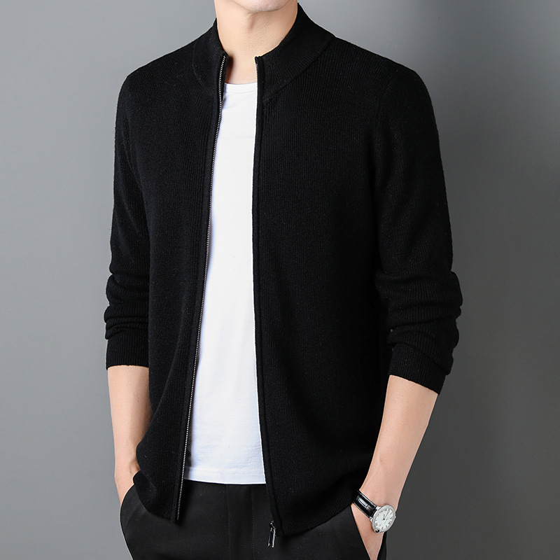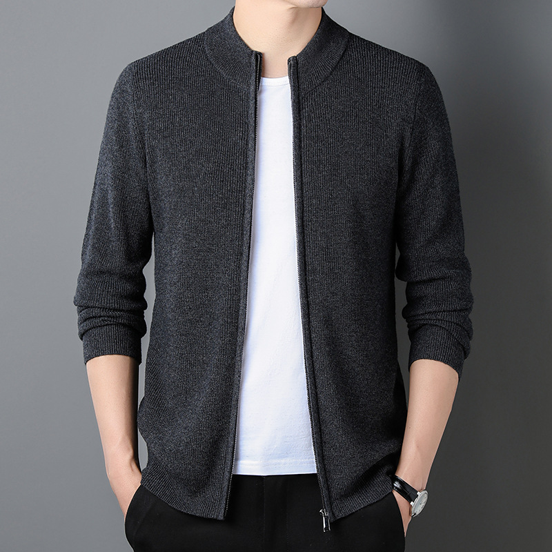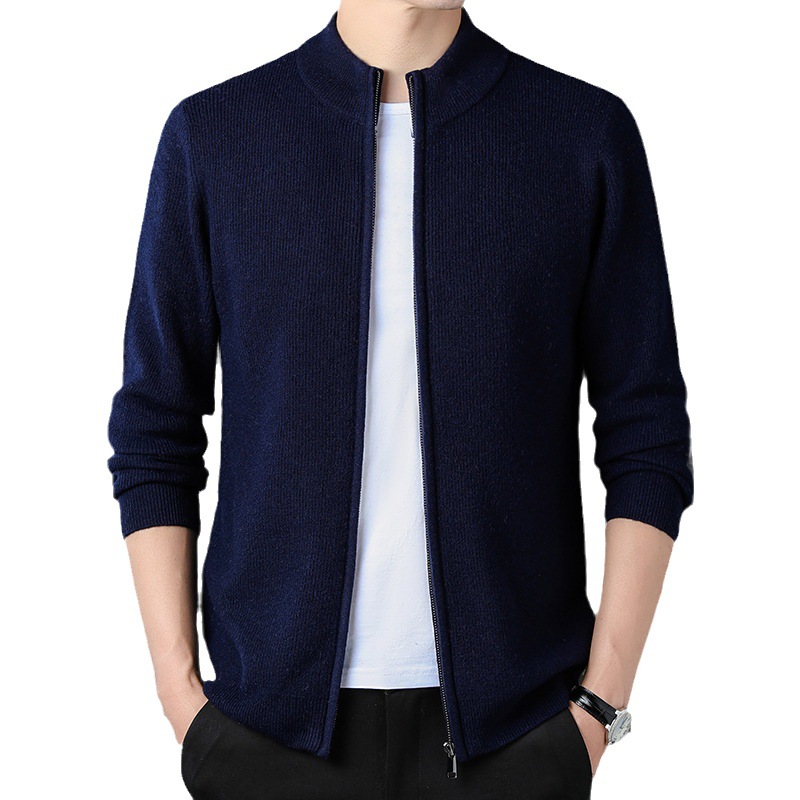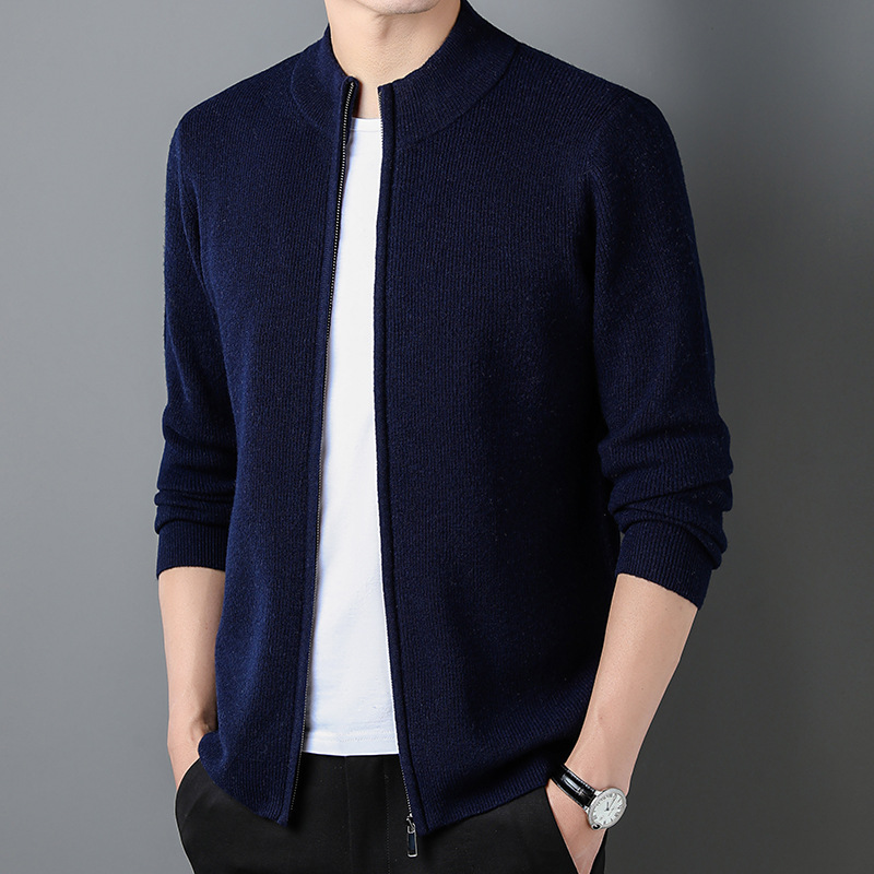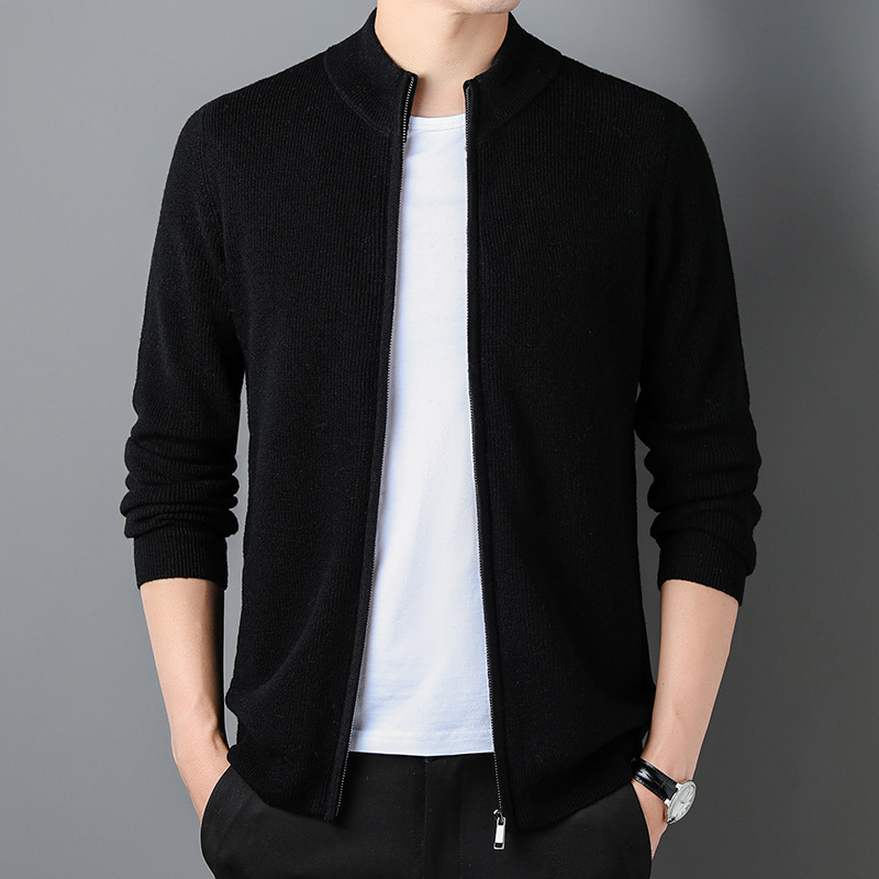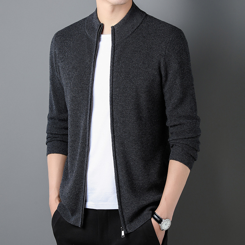 100% Wool Cardigan Mens Coat Sweater Long-sleeved Outerwear Stand-up Collar Warm